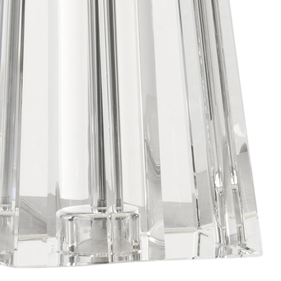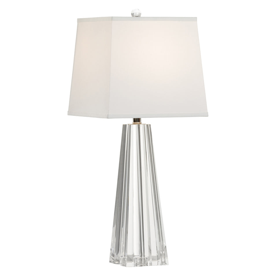 This Wildwood table lamp combines everyday function with high style. Elegant and elevated, this lighting fixture delights atop a nightstand or end table. The Wildwood Irina table lamp features delicately cut crystal with a scooped notch in the center of each side, neck in Polished Nickel.