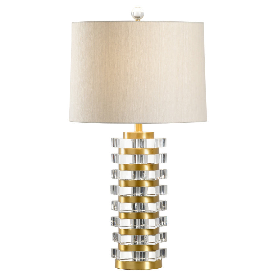 This Wildwood table lamp combines everyday function with high style. Elegant and elevated, this lighting fixture delights atop a nightstand or end table. The Wildwood Layer of Luke table lamp features Clear Crystal and Antique Brass stacked lamp with Antique Brass mounting.
