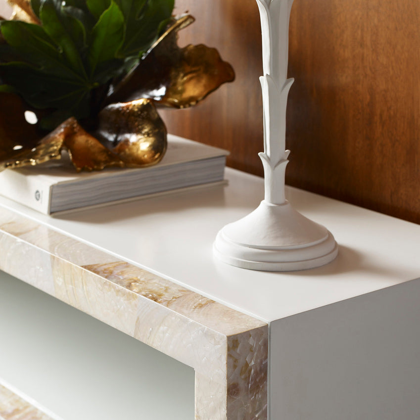 Designed for Wildwood by Meg Braff, the Roche Candlestick was inspired by the Rococo style favored by French designer Serge Roche. This pair of exquisite candlesticks are hand crafted of white composite. Perfect for creating a warm glow on tabletops in any decor. 1-1/2in candles not included.