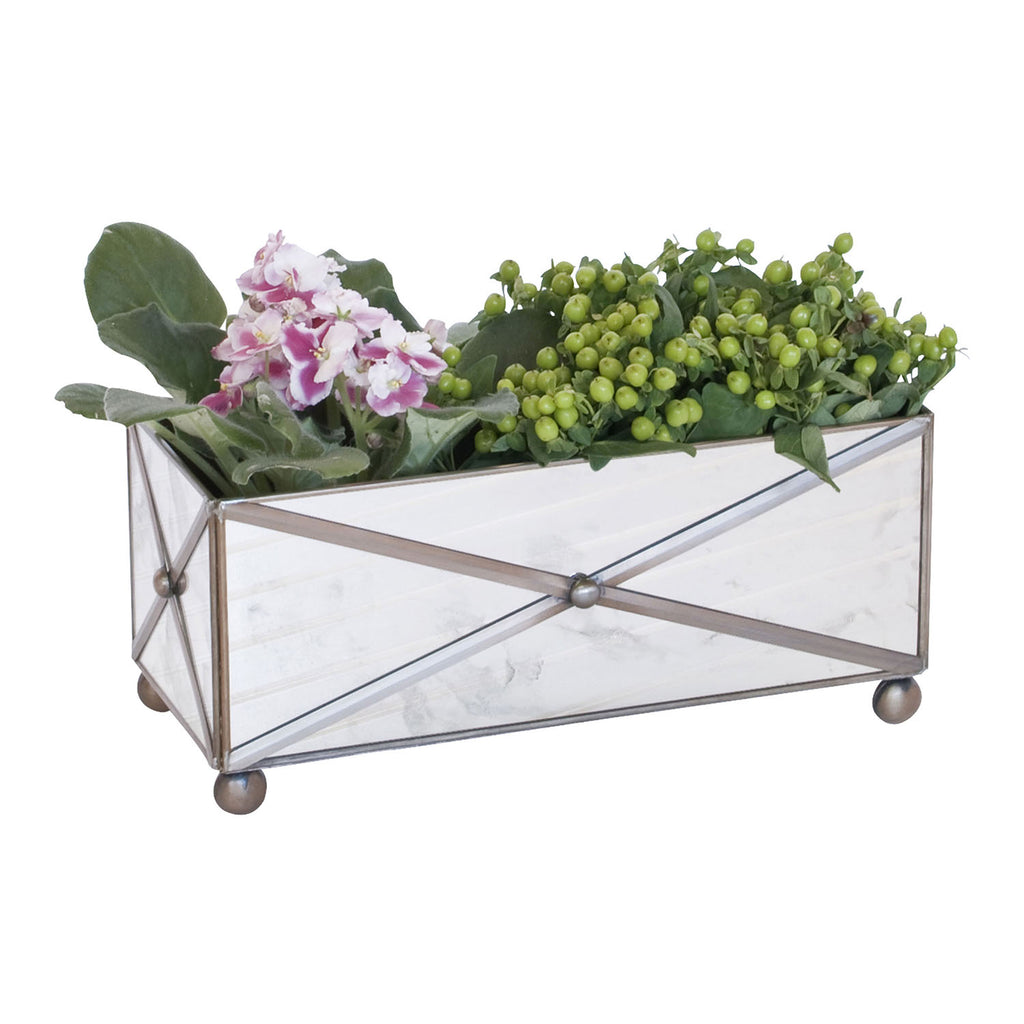 Bring a touch of French provencal living to your indoor or outdoor garden room. This rectangular planter is finished with a distinctive crosshatch pattern and antique mirrors on raised ball feet.