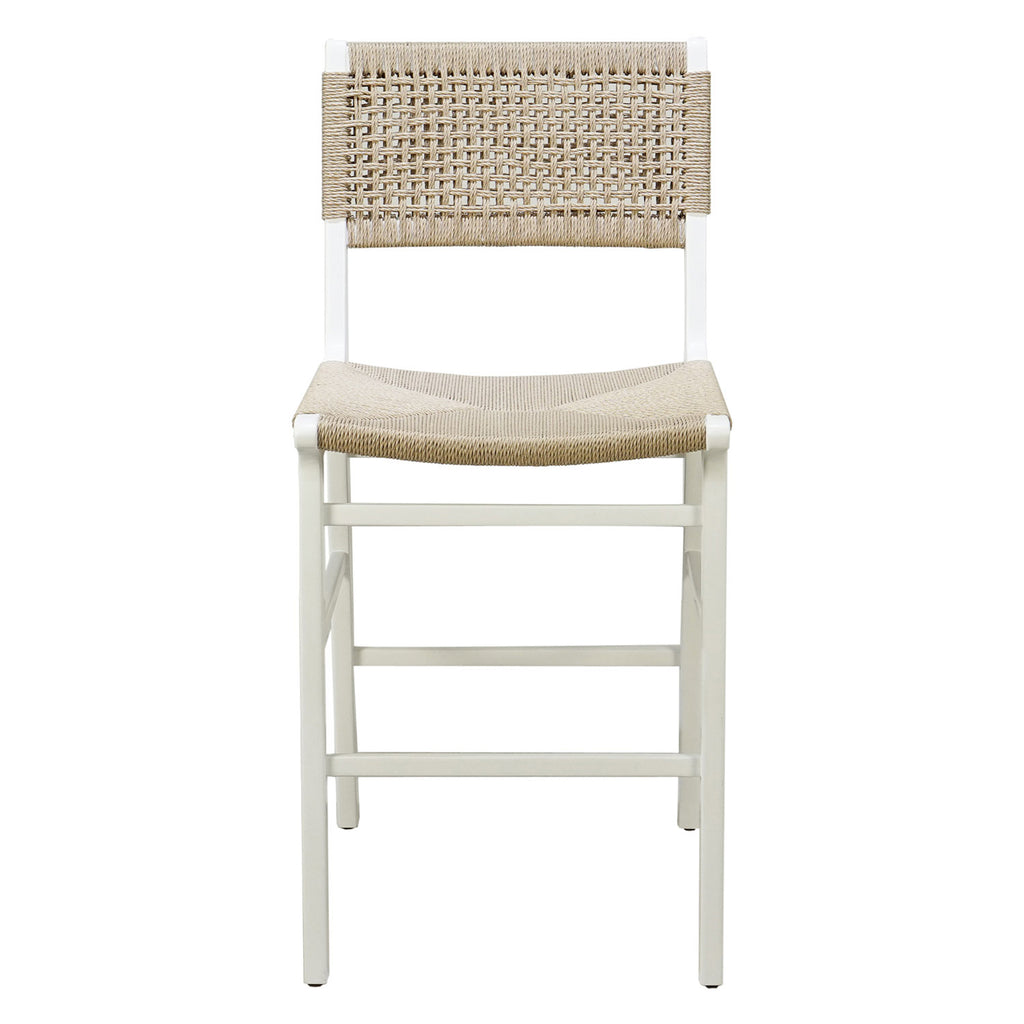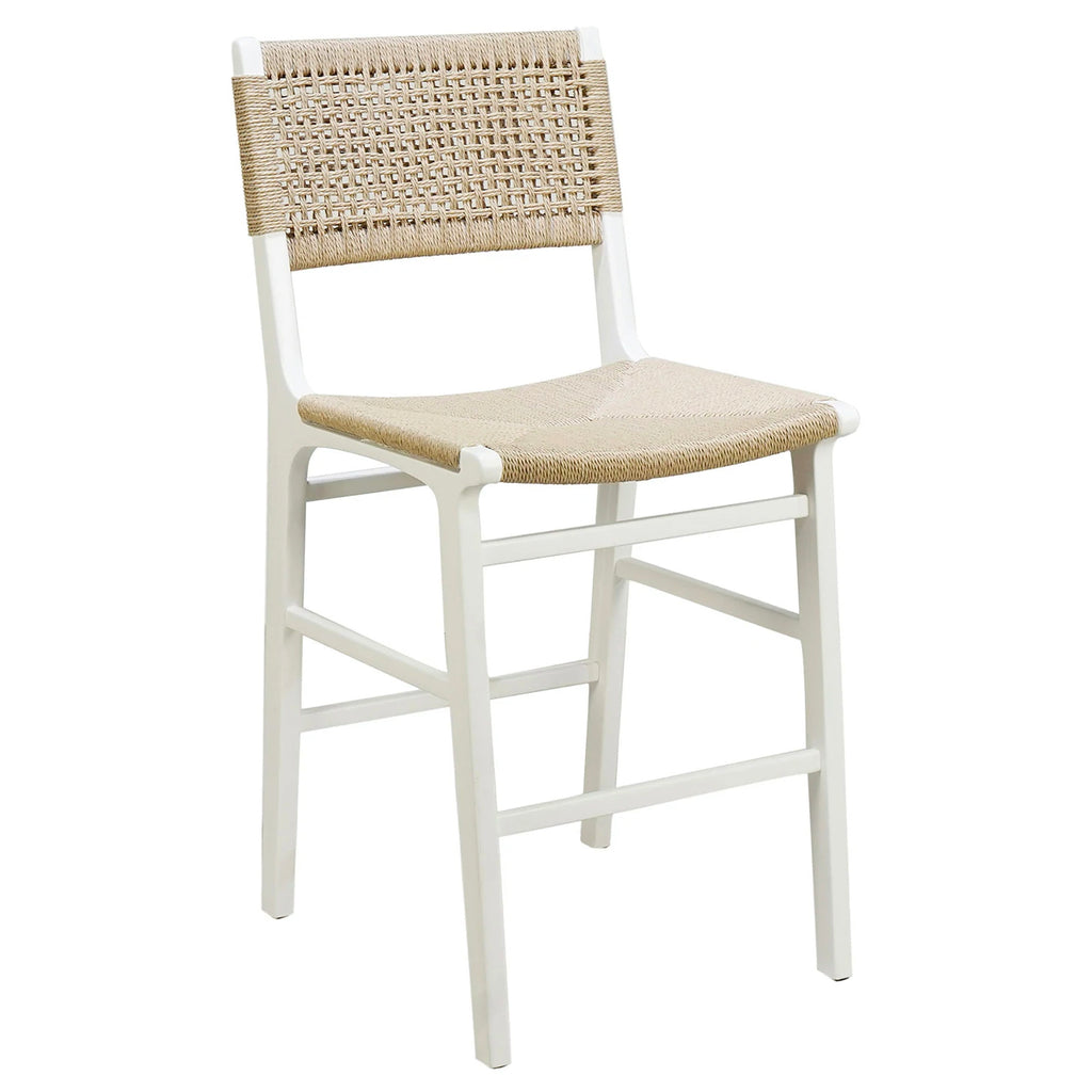From Worlds Away, this bar stool brings an added touch of modernity to your dining room or kitchen. Guests can enjoy this stool's gorgeous contemporary look whiles sitting comfortably upon its luxurious seat. Its unique transitional style makes it a sophisticated addition to your home. The Worlds Away Astrid counter stool is a can't miss complement to your kitchen island. With a woven back and rush seat, Astrid seamlessly blends casual elegance and rustic charm for your Farmhouse, Country, or Boho inspired home. Sturdy, cerused oak or matte white frame, reinforced with stretchers and foot rest, provide exceptional durability for this high style perch.