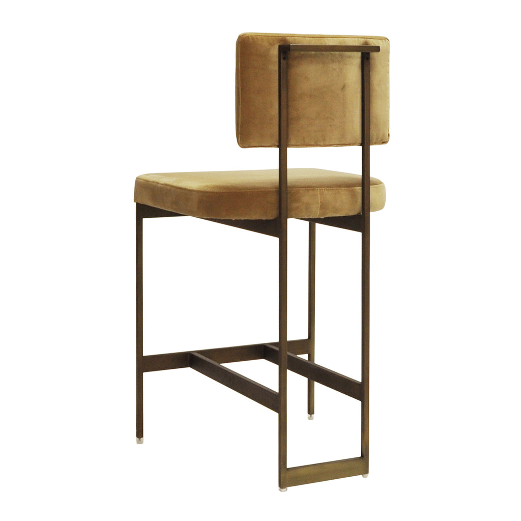 The clean lines and simple geometry of our Worlds Away Baylor counter height stool are inspired by early European modernists. Sturdy back handle incorporated into the metal frame for easy portability.