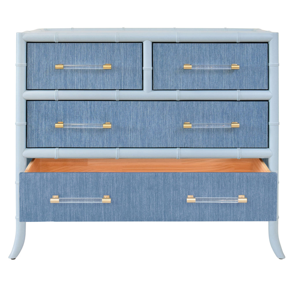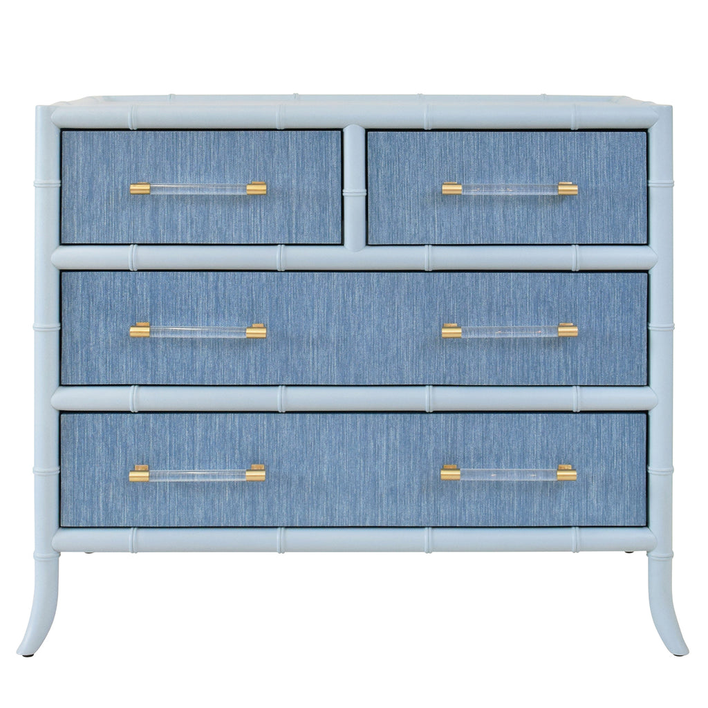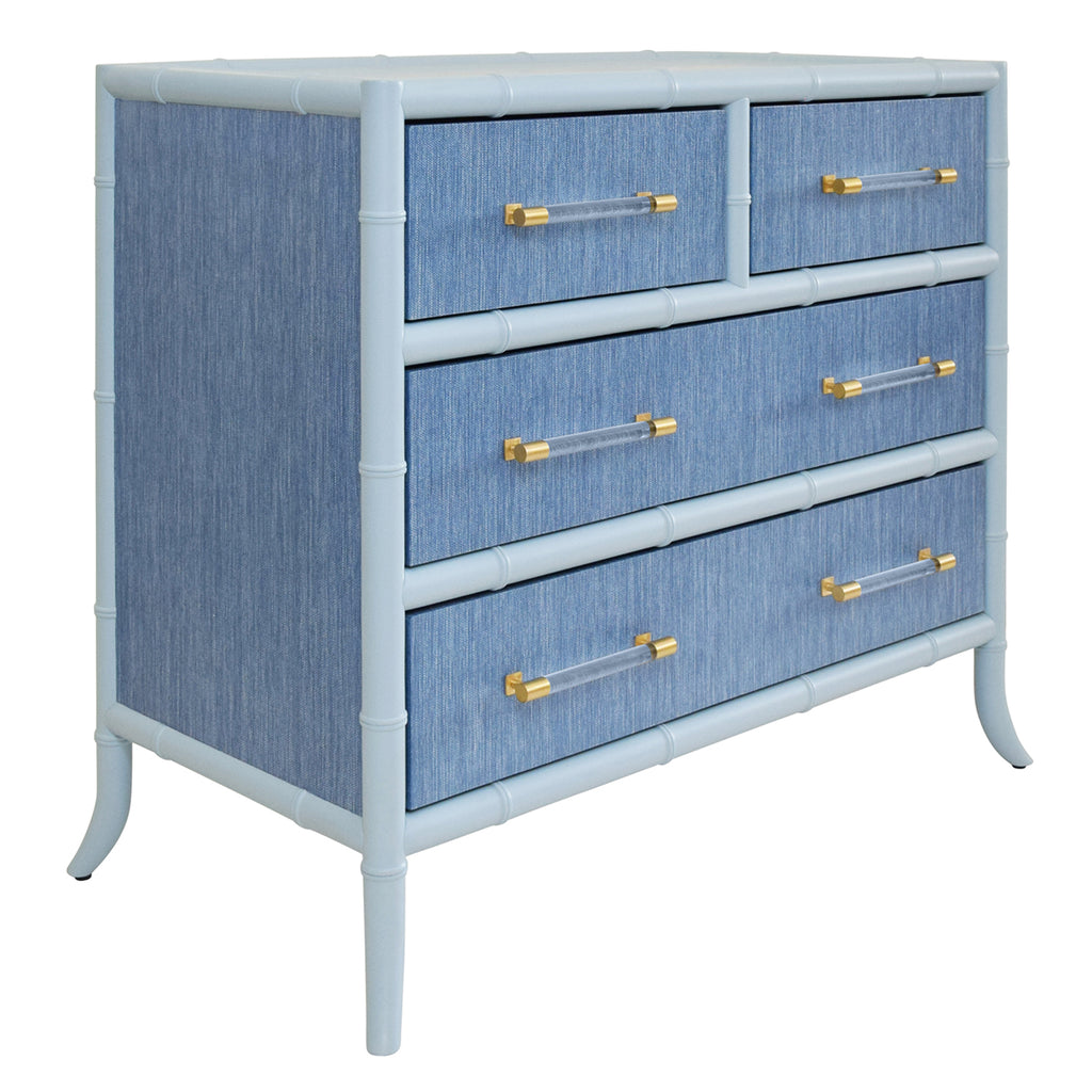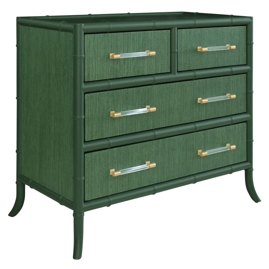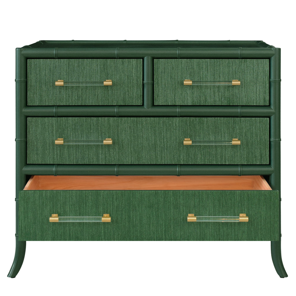 • Four Drawer Chest with Bamboo detail in Grasscloth with Lacquer