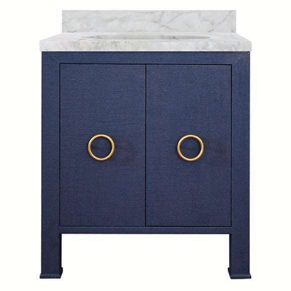 This bath vanity from Worlds Away brings beautiful sophistication to your bathroom. Contemporary details give this one-of-a-kind piece a gorgeous presence in your space, while its clean lines offer a bold yet simple statement. The Worlds Away Blanche bath vanity with Antique Brass hardware featuring White marble top and porcelain sink.