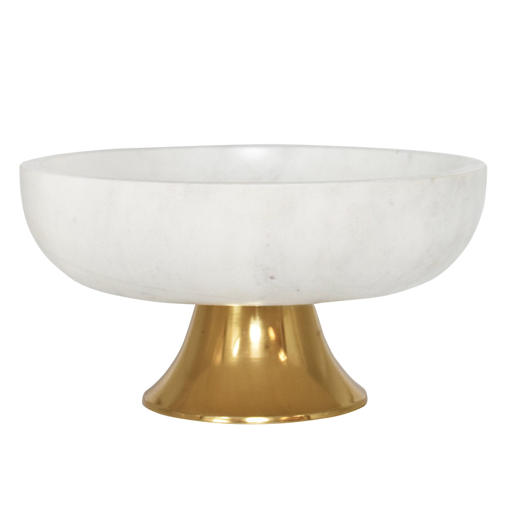 • White and Gray Marble Bowl with Brass Tapered Pedestal base