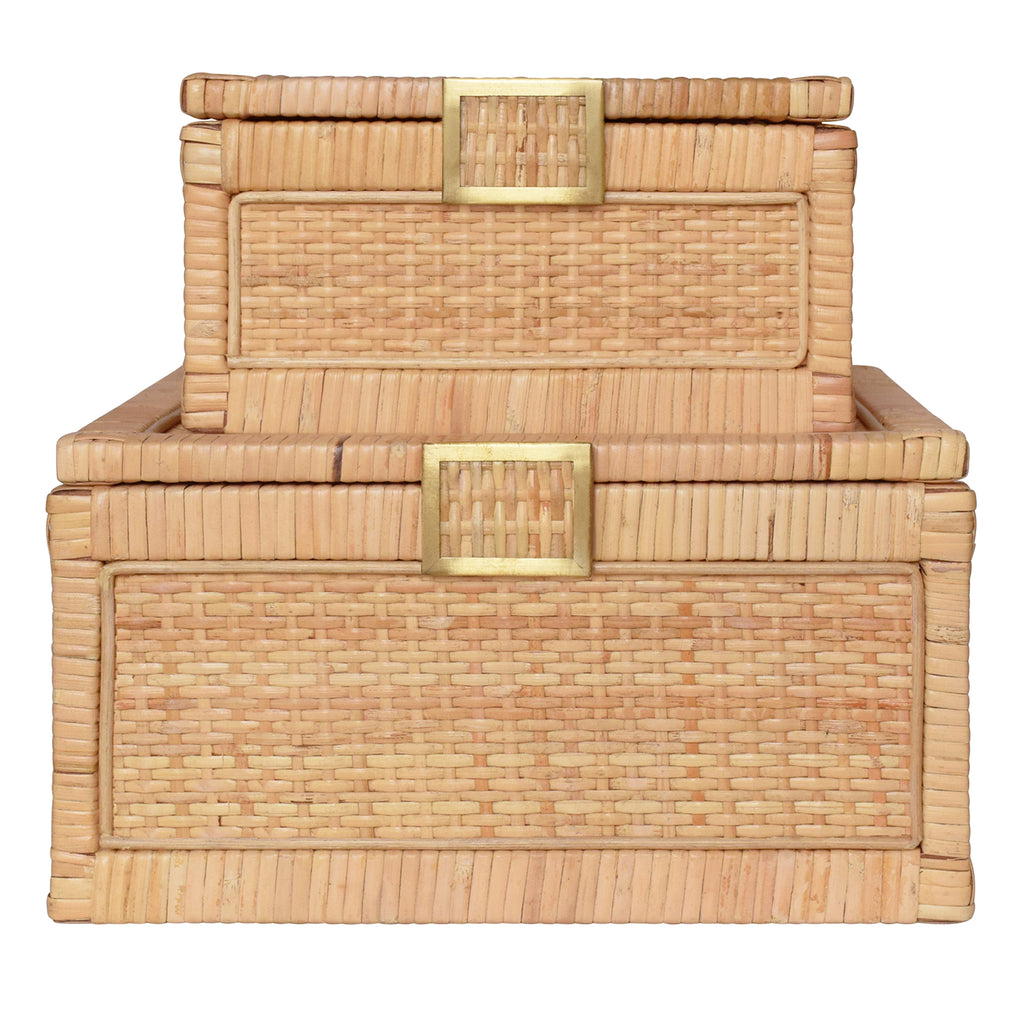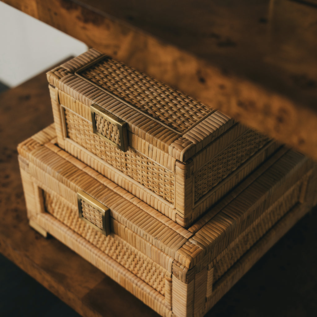 • Natural Rattan Decorative Box with brass foot caps