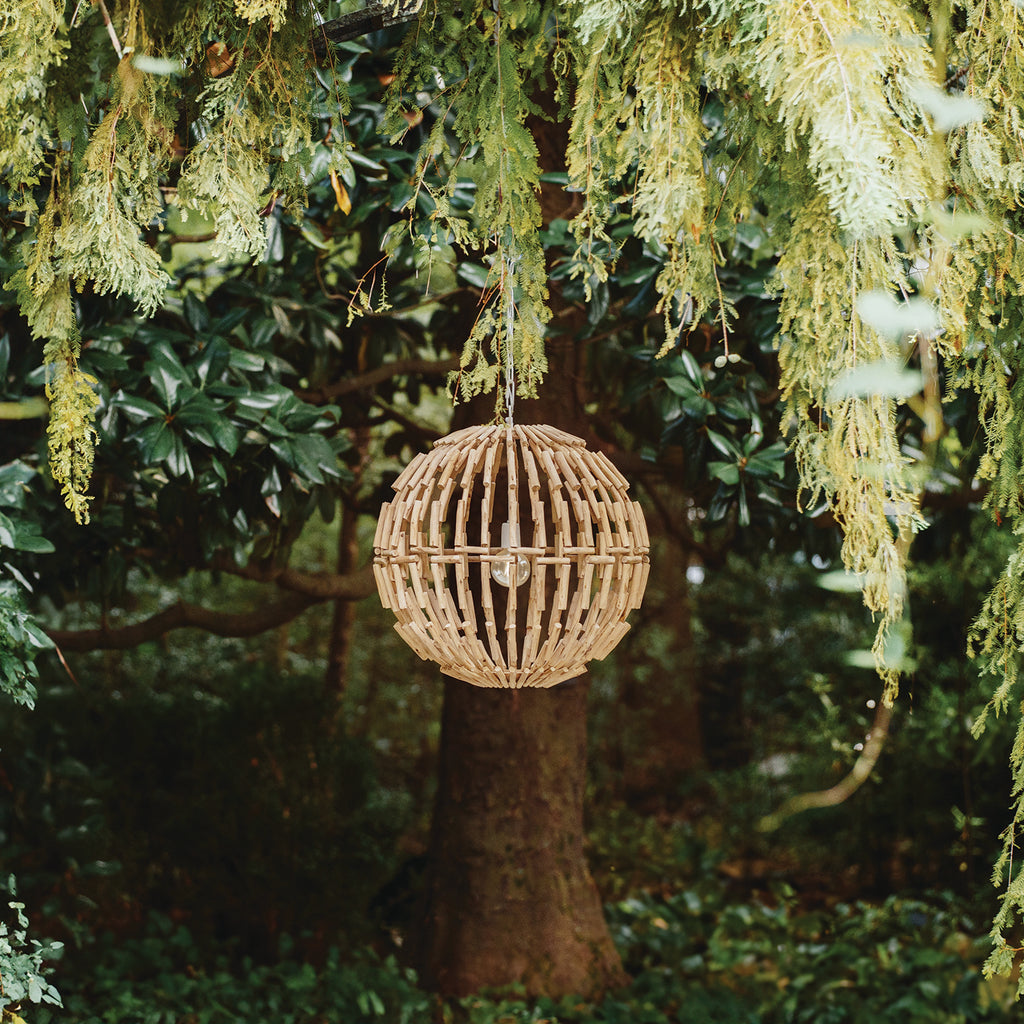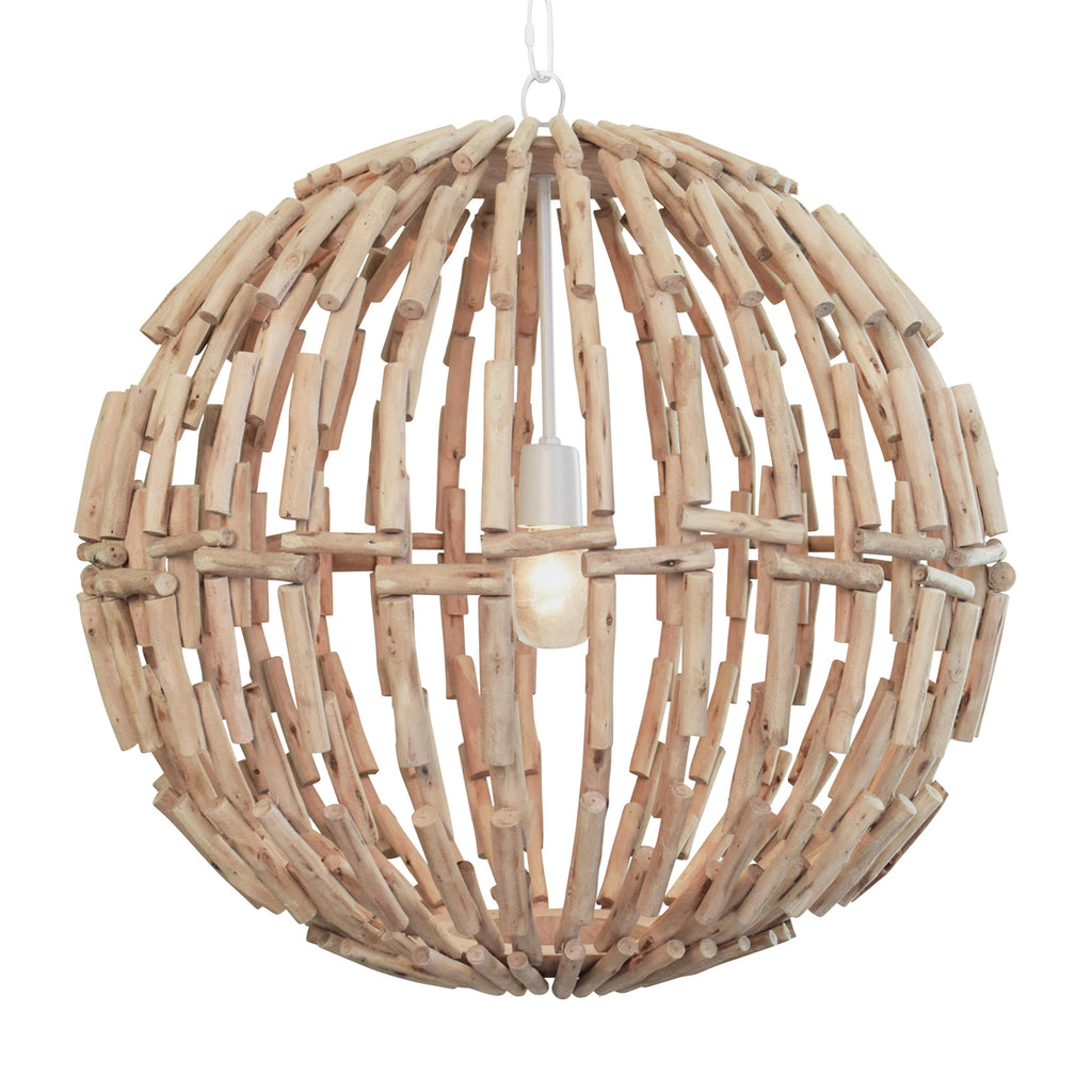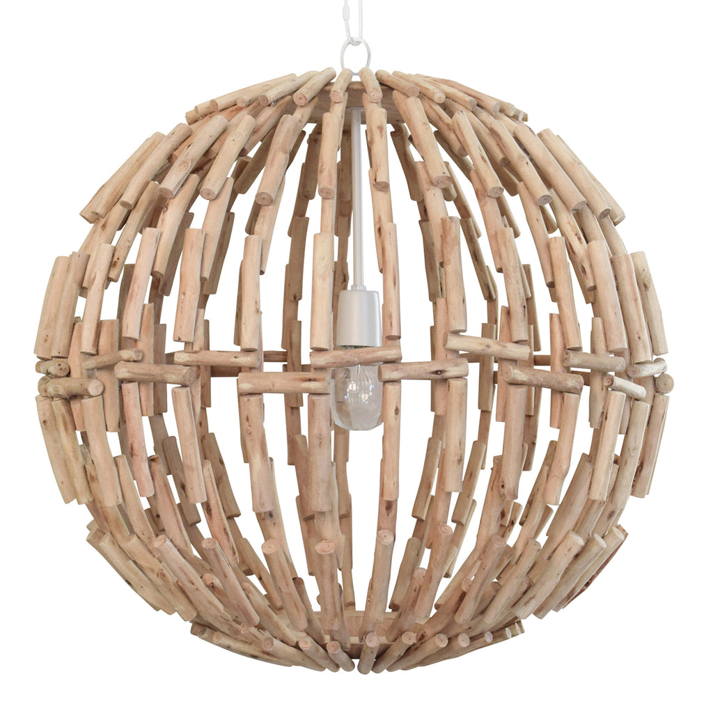 • Sphere shaped pendant handcrafted with whitewash eucalyptus wood
