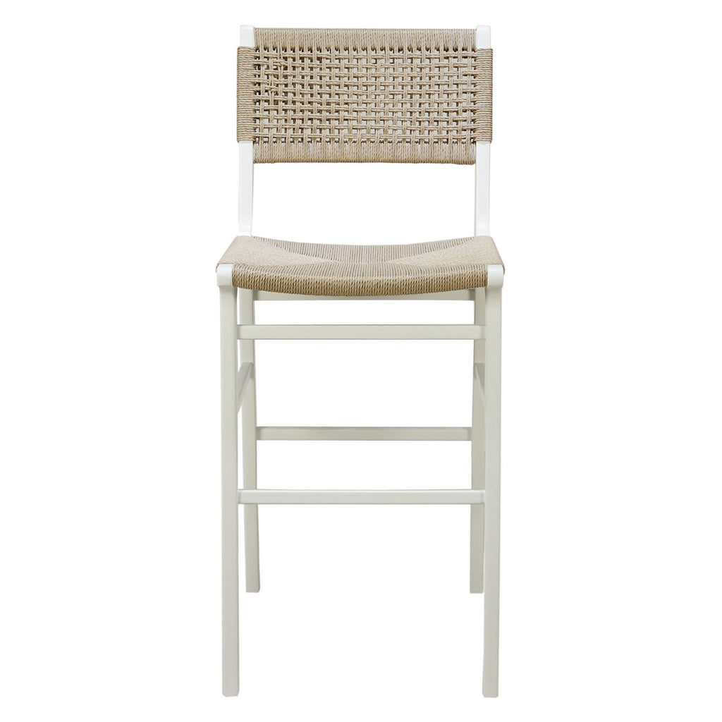From Worlds Away, this bar stool brings an added touch of modernity to your dining room or kitchen. Guests can enjoy this stool's gorgeous contemporary look whiles sitting comfortably upon its luxurious seat. Its unique transitional style makes it a sophisticated addition to your home. The Worlds Away Carson barstool is a can't miss complement to your kitchen island. With a woven back and rush seat, Astrid seamlessly blends casual elegance and rustic charm for your Farmhouse, Country, or Boho inspired home. Sturdy, cerused oak or matte white lacquered frame, reinforced with stretchers and foot rest, provide exceptional durability for this high style perch.