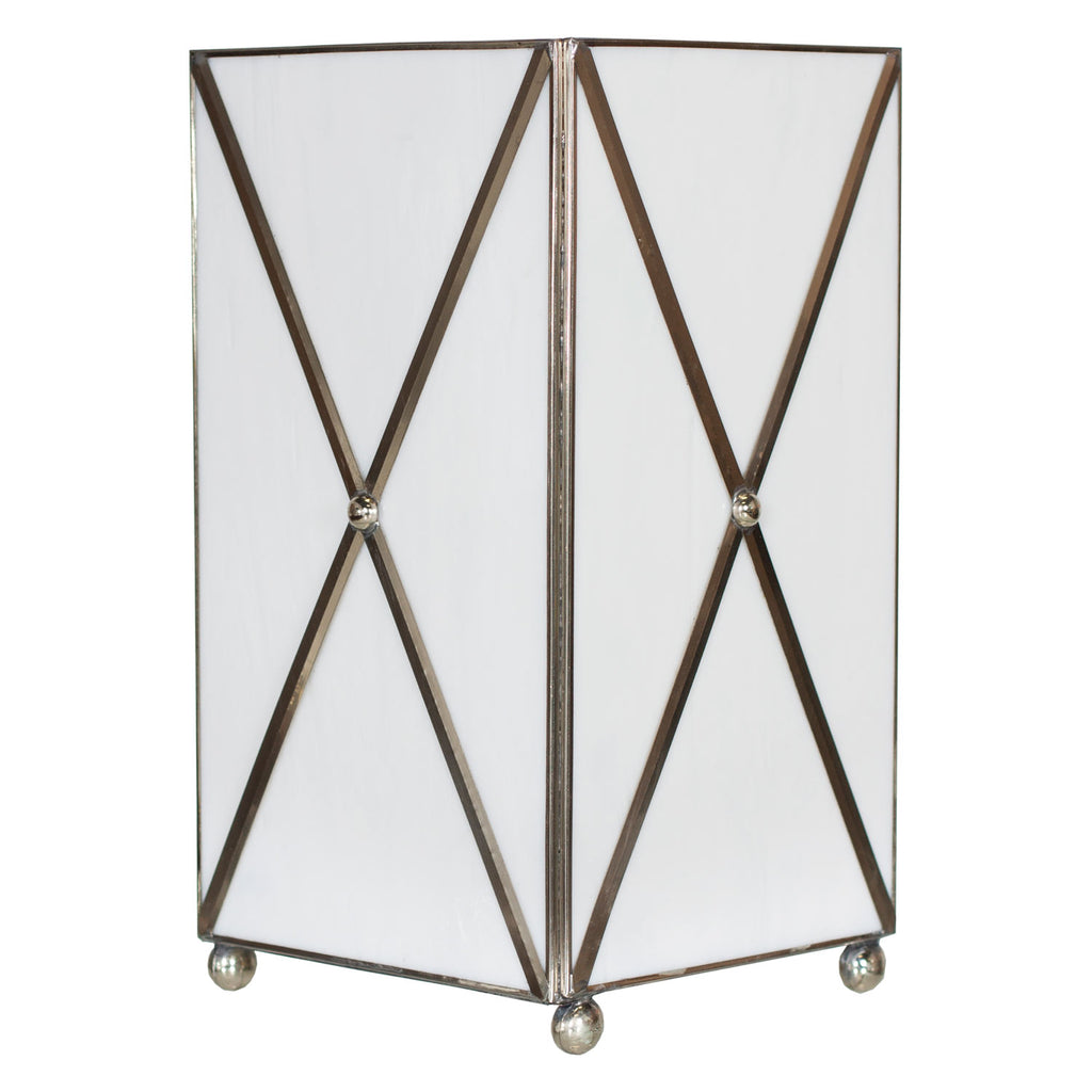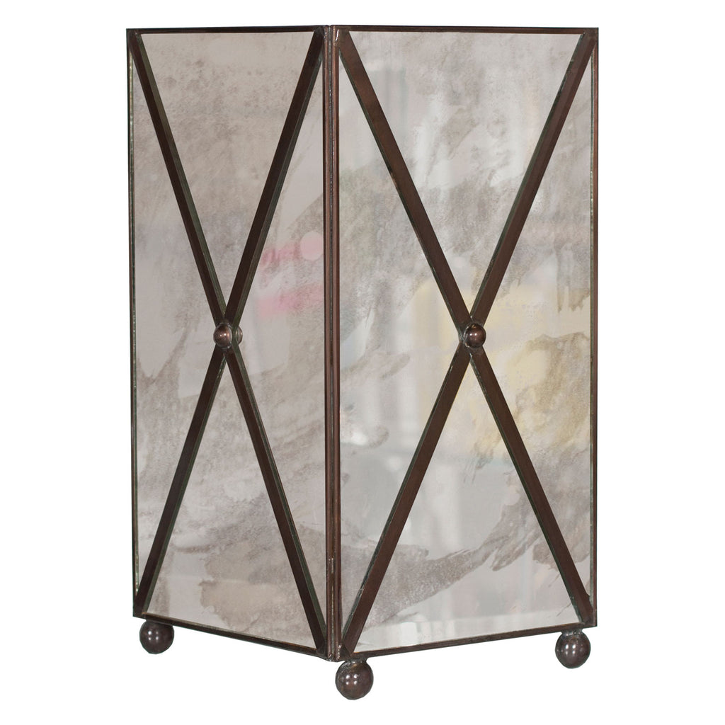 Worlds Away lends its one-of-a-kind elegance to your home with this sophisticated wastebaskets. Abstract and elegant, this modern accent delights with fresh, striking style. Antique mirror or white glass square wastebasket with crosshatch.