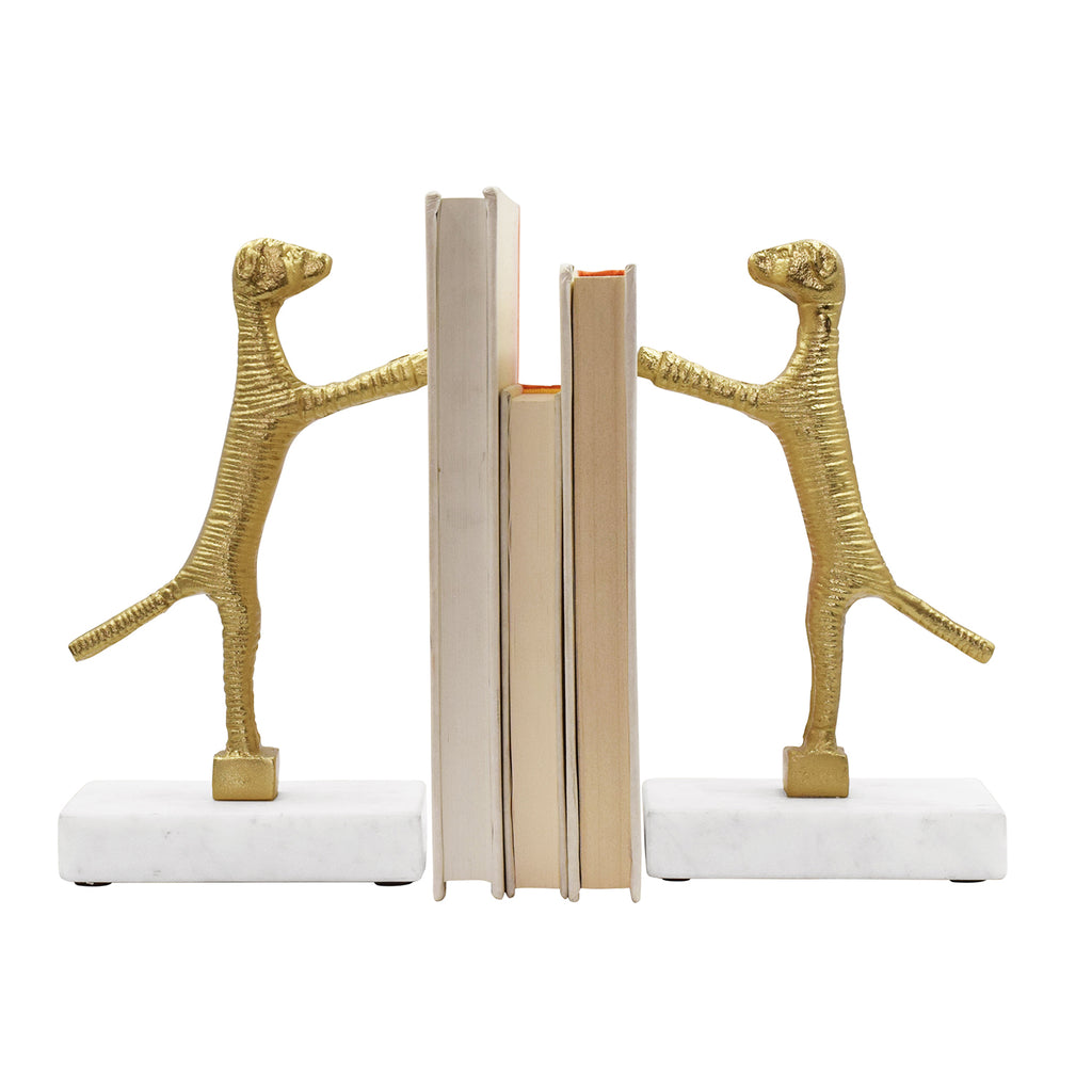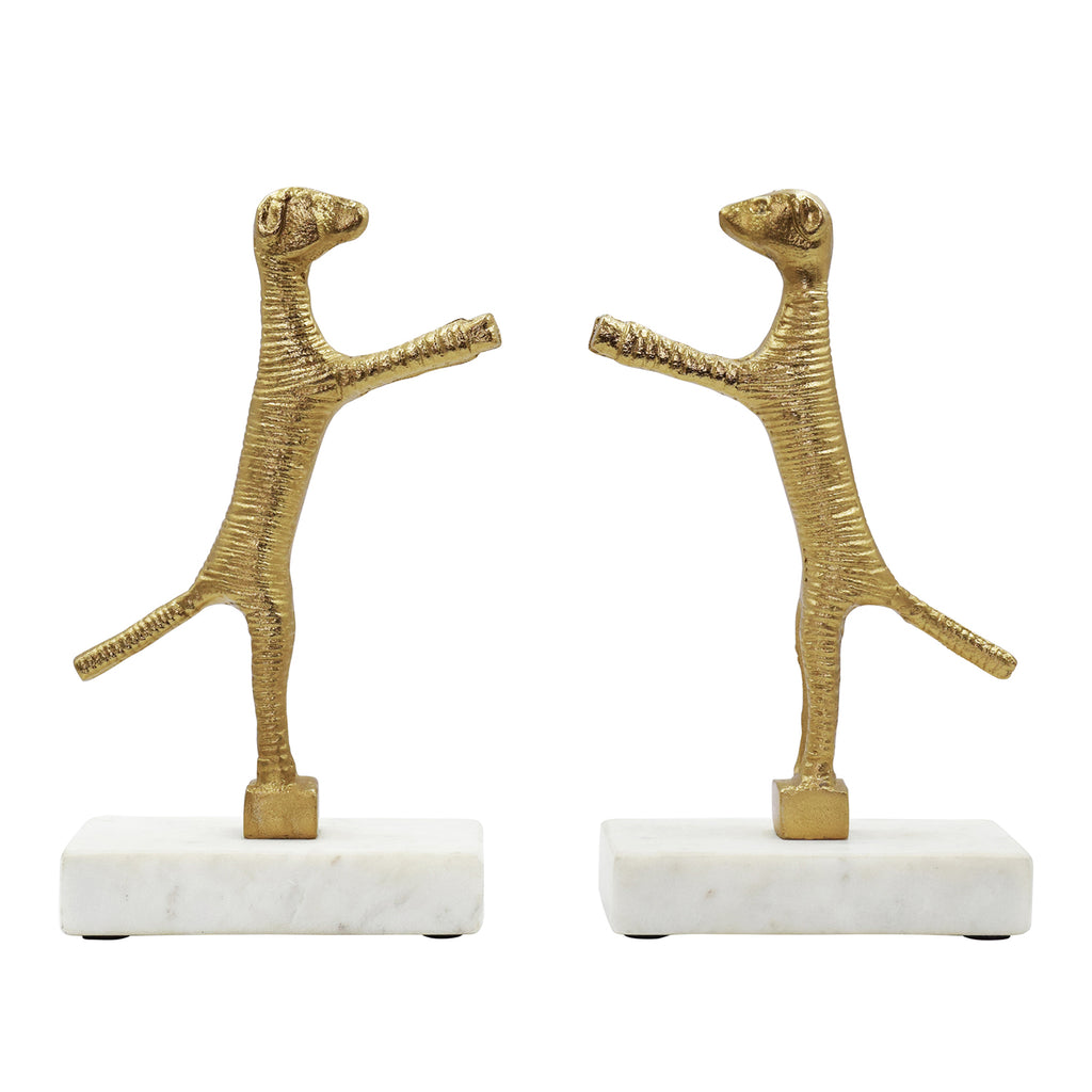 • Pair of Dog bookends in brass finish on white marble base