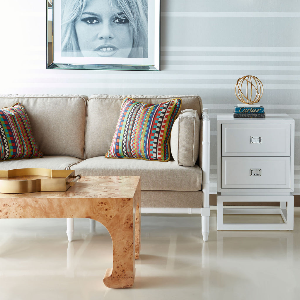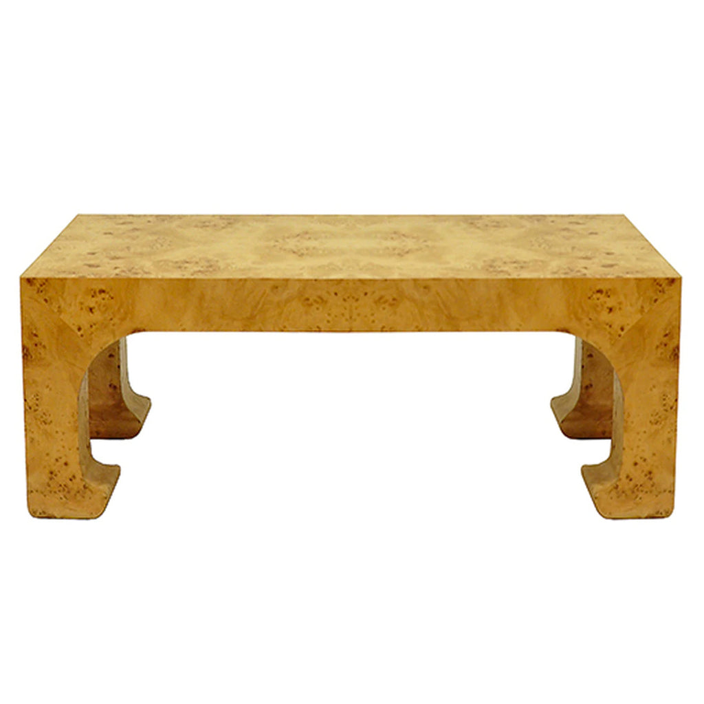 From Worlds Away, this coffee table offers a dazzling presence to a living room. Sleek and elegant, this chic furnishing expresses bold modernity with geometric style. Its minimalist silhouette makes it a transitional piece for your space. Pagoda style coffee table in burl wood.