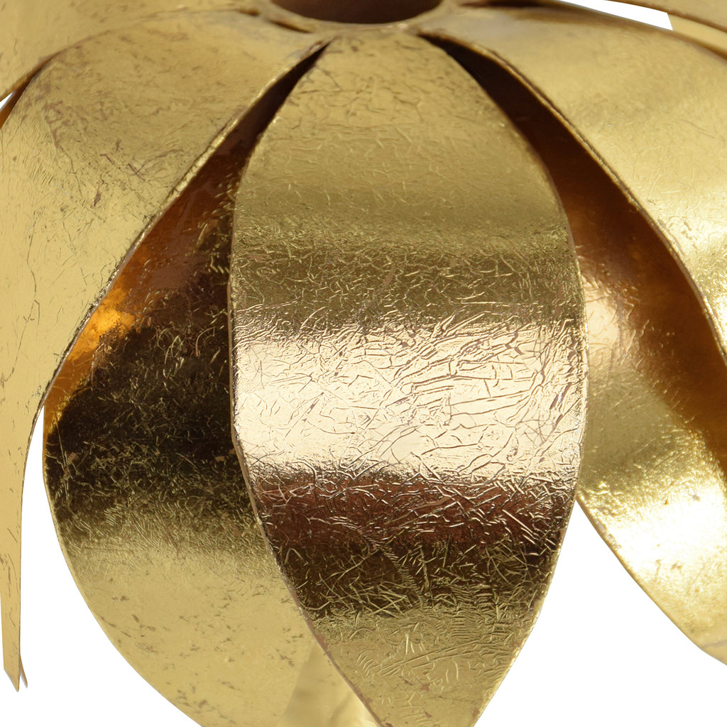 • Iron palm tree candle holder in gold leaf finish on white and gray marble base