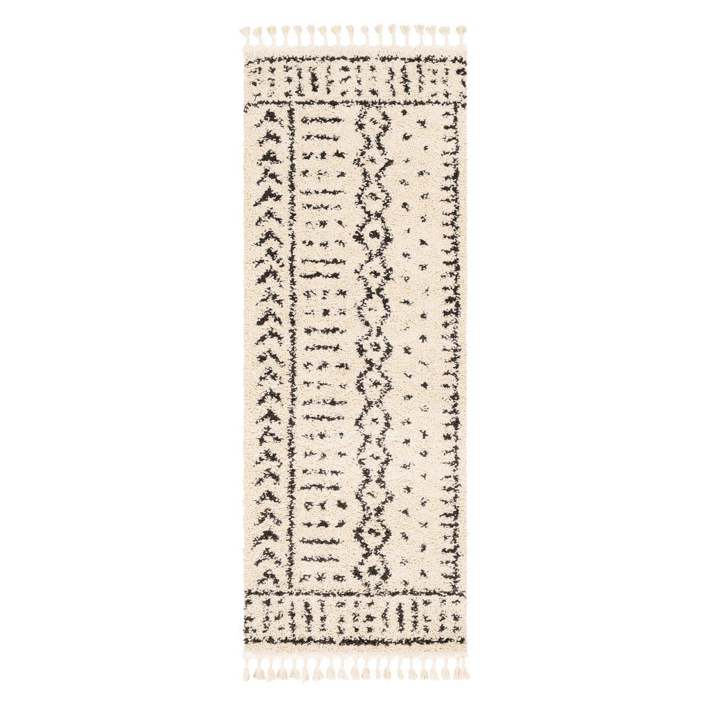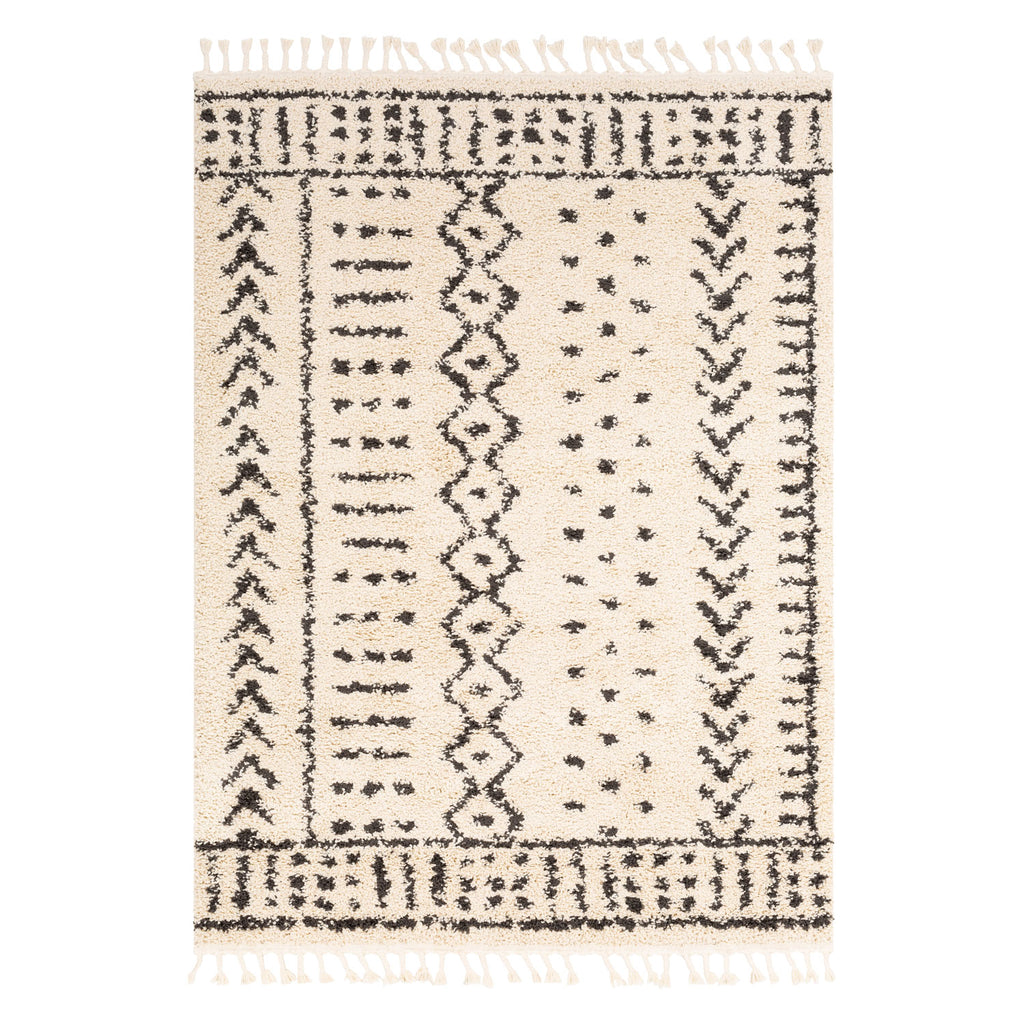 Beautiful moroccan patterns are abundant in the Berber Shag collection. With its plush pile and braided tassels, this collection is sure to add a Bohemian flair to every room of your home! Machine made in Turkey of 100% Polypropylene.