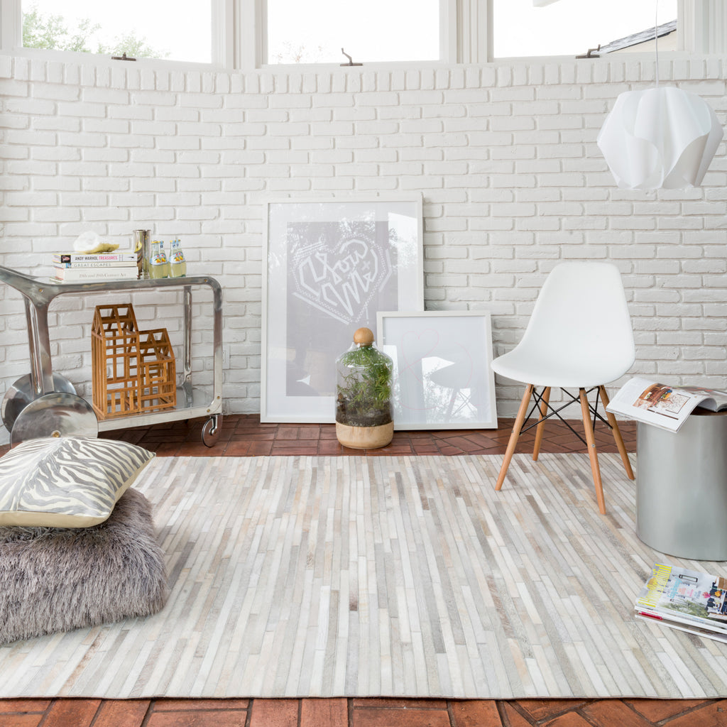 Hand stitched in India of 100% authentic cowhide, the Loloi Promenade is a contemporary version of the timeless cowhide rug. The modern collection offers patterns that range in graphic designs with a strong contrast of light and dark hides. And the durable cowhide fiber makes Promenade ideal for your most frequented rooms.