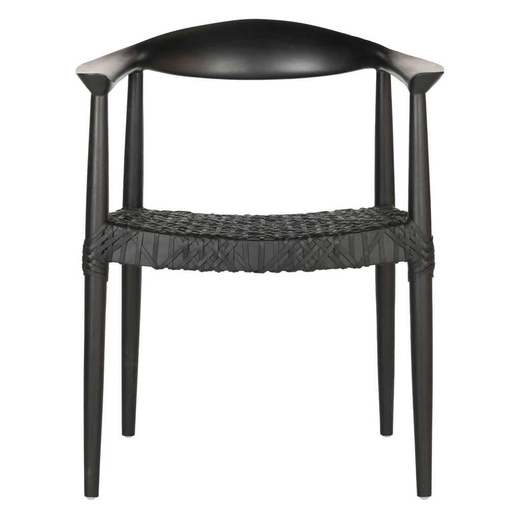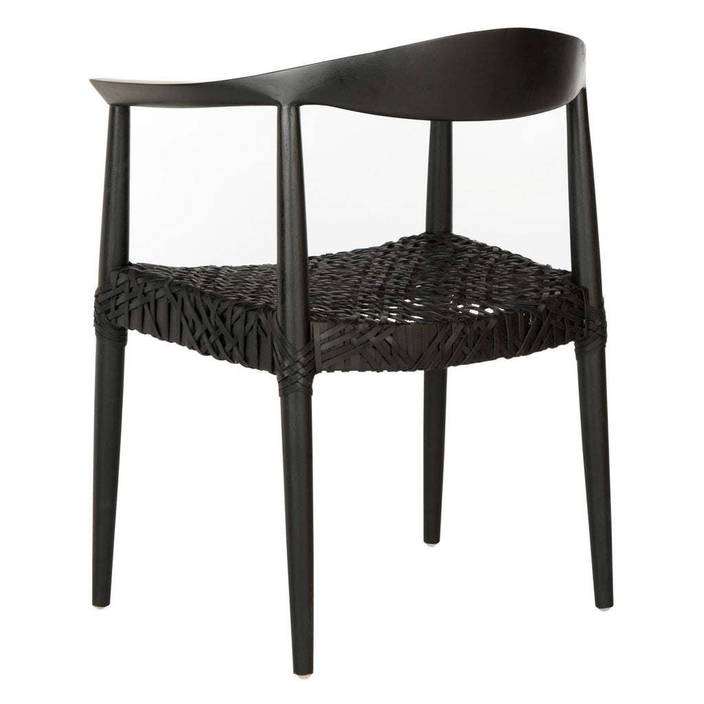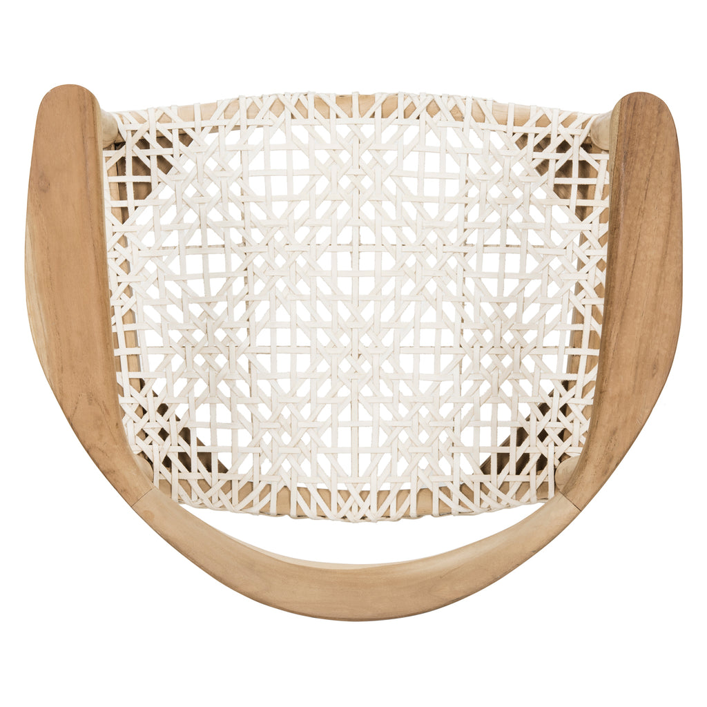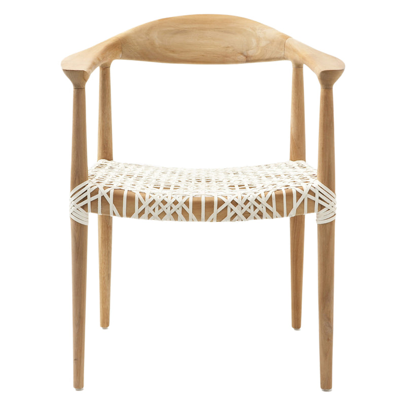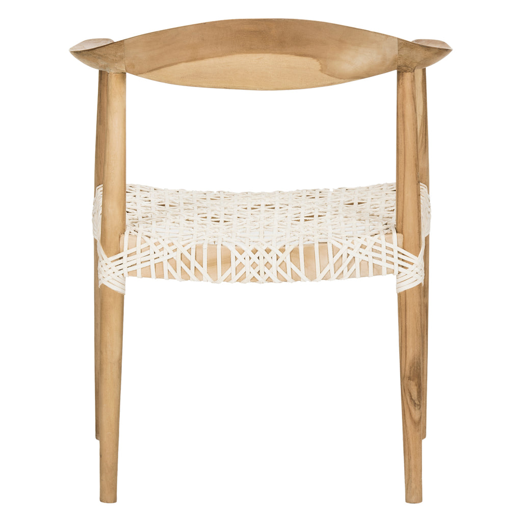 Reminiscent of mid-century modern chairs with spindle legs, this retro chic armchair is updated with intricate woven seat in a contemporary laced web effect. Made from reclaimed teak, this transitional chair adds character to the living room, family room or perhaps a pair facing a desk.