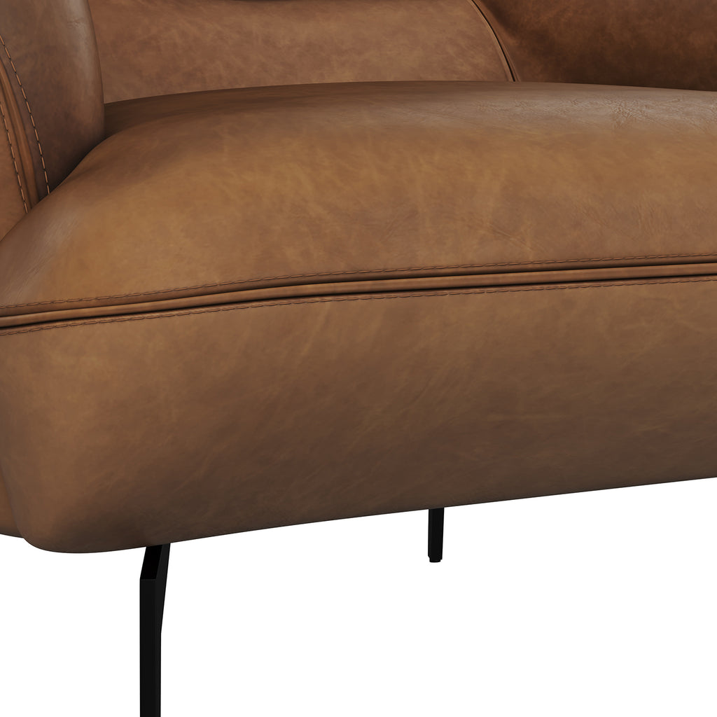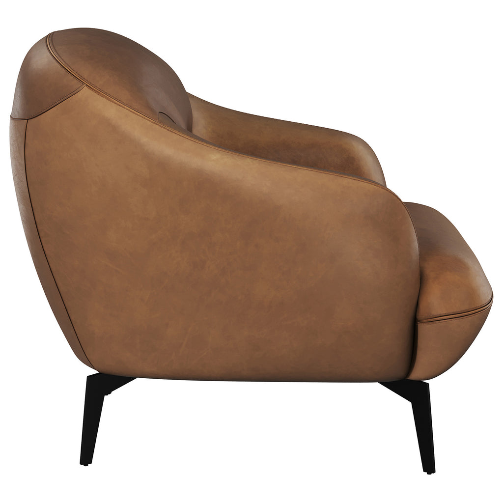 Smooth curves infuse contemporary flair to this Italian-made armchair. Designed for superior comfort with generous, cushioned armrests and backrest. Upholstered in a 100% Italian bovine leather for exceptional quality that is made to last. This fine material is a natural grain, aniline leather that is dyed using traditional methods, resulting in consistent and even colouring throughout the piece. Finished with matte black iron legs.