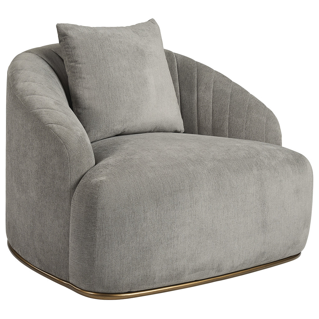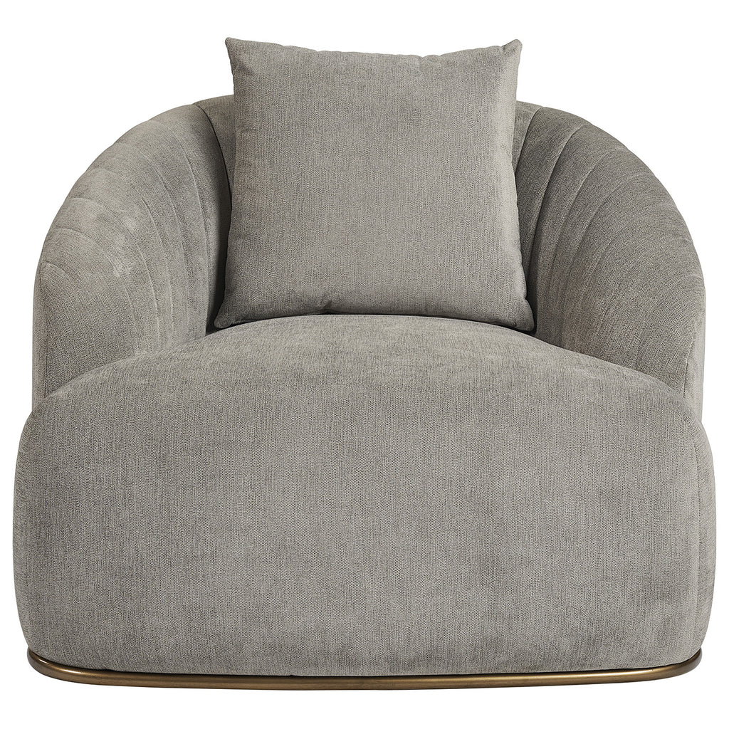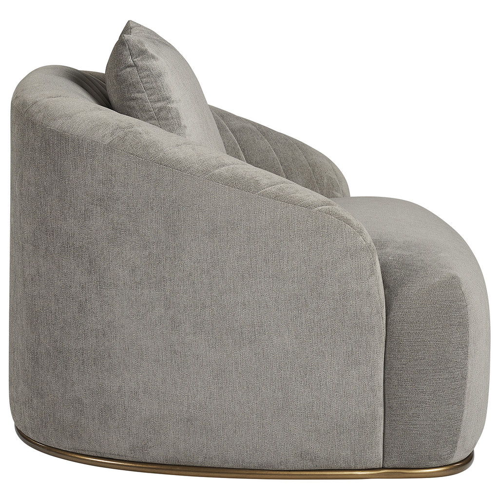 The beautiful lines of this chair will make a bold and comfortable statement in any space. Features a curved seat back with channel tufting in velvet fabric. Finished with an antique brass iron frame.