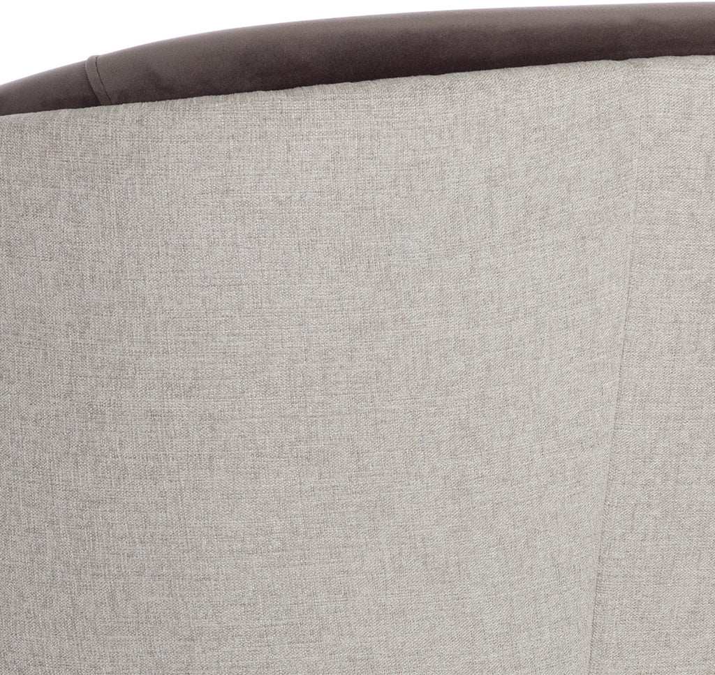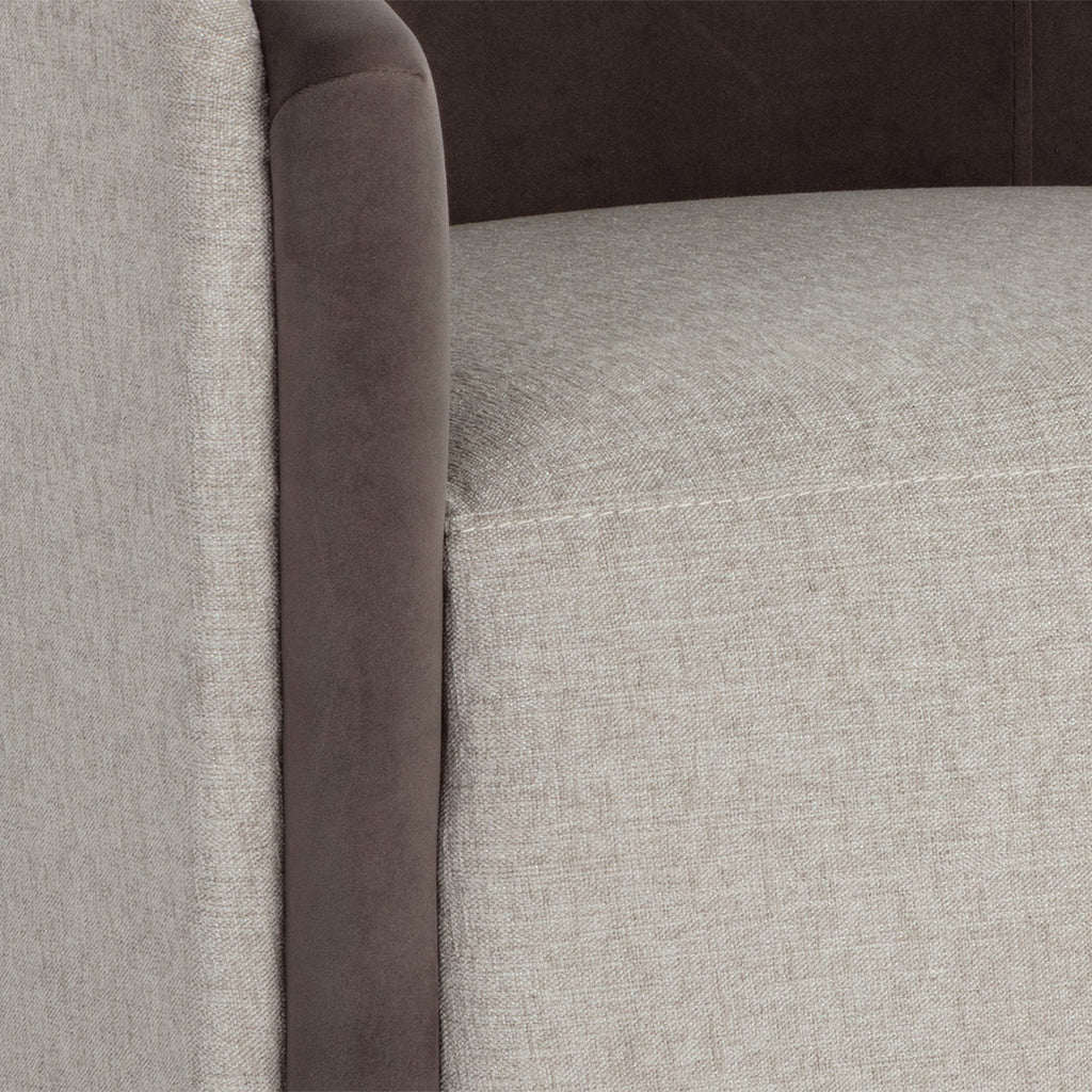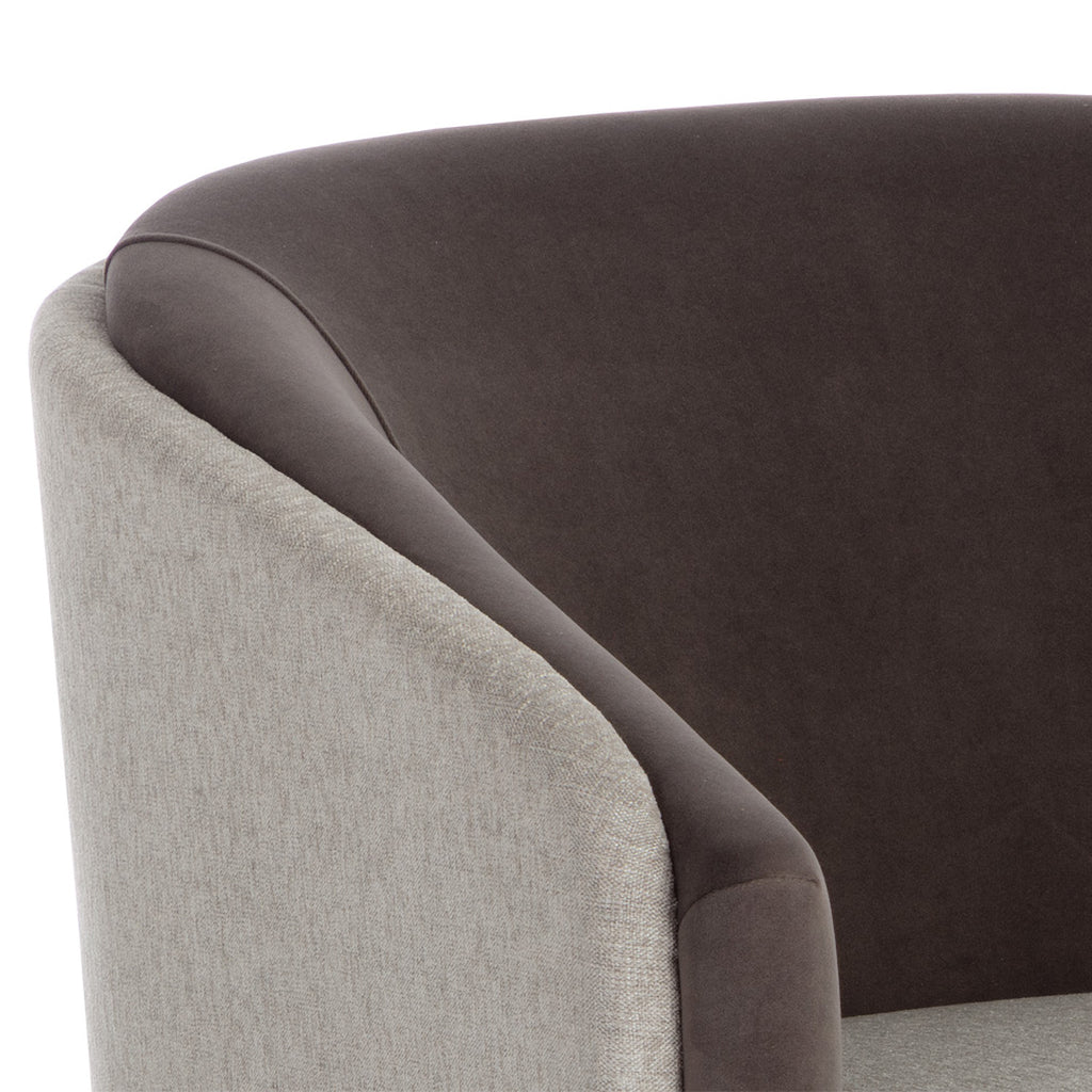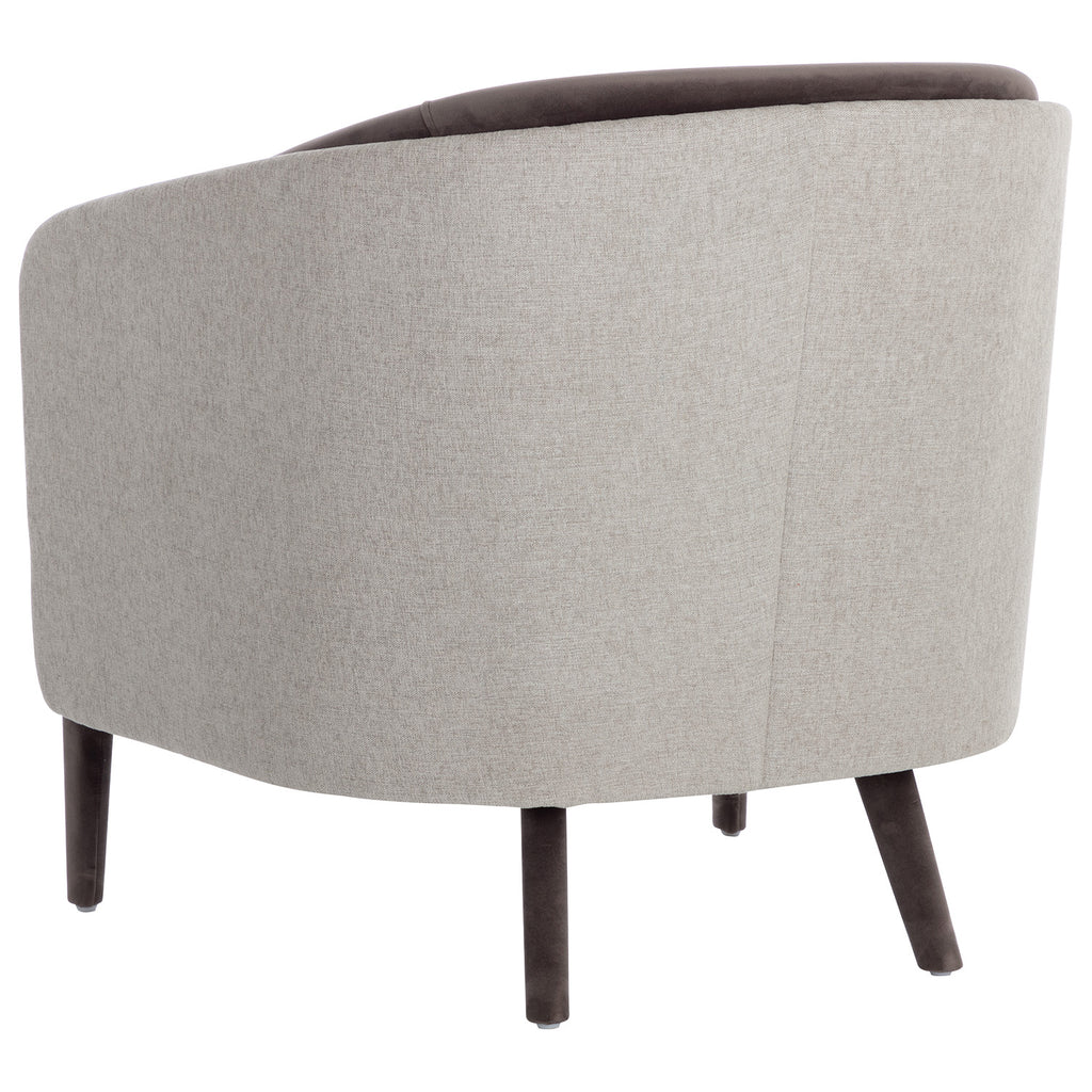 With an alluring barrel back seat back, this stunning lounge chair will add a touch of comfort to any space. Features an upholstered exterior and seat and completed with coordinating fabric on the interior seat and legs.
