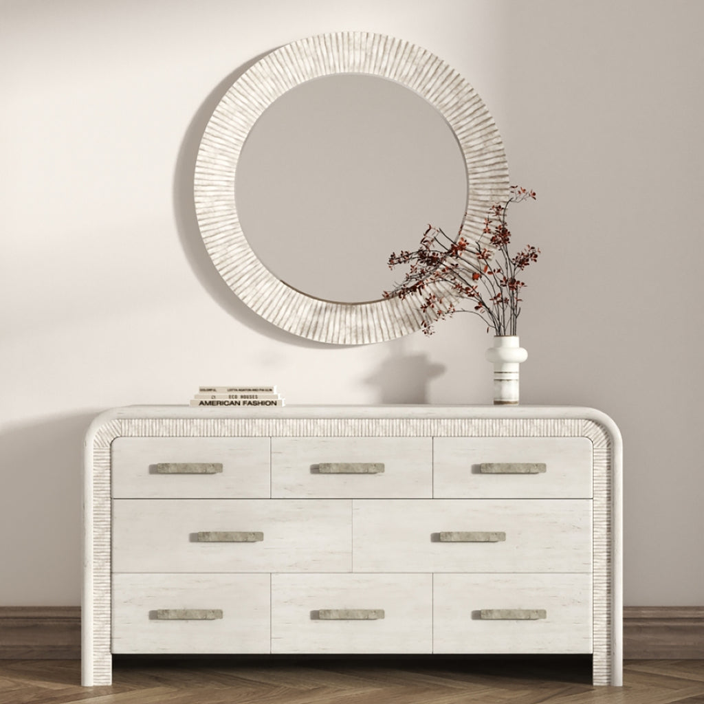 Evoking an open air and near the sea allure, Ashlar blends Coquina textures and silky-smooth painted surfaces into organic silhouettes. Its neutral color palette and sanded metal accents are reminiscent of a stroll on the sparkling sands of the Keys. Amorphic shapes mix with rich textures to stir a sensory experience that satisfies any space with a relaxing and calming ambiance.