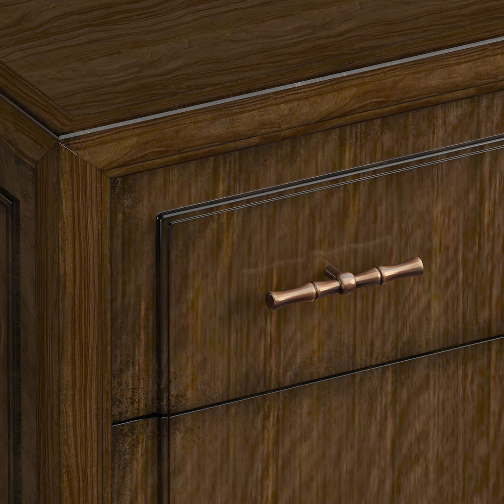 New Traditional Nightstand in Quartered Walnut with Faux Bamboo Hardware in Burnished Gold Finish