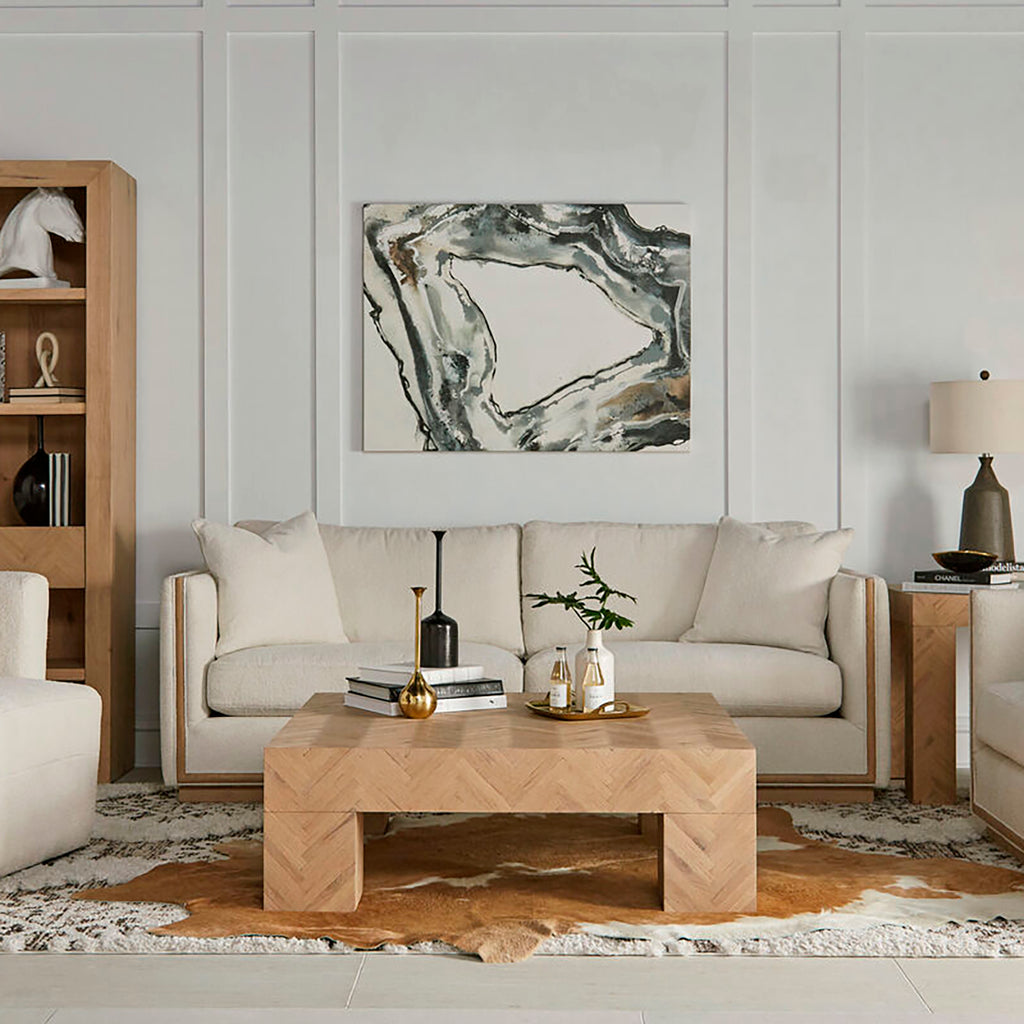 Add an element of height to your home with the A.R.T. Furniture Garrison Bookcase. Featuring adaptable storage, you?ll have room to store and display your books, decor, and collectibles with ease. Two (2) adjustable shelves allow you to customize the height clearance, while two additional fixed shelves provide stable and secure storage. The concealed drawer storage features a striking herringbone pattern of white oak veneers, adding an element of visual interest. Enjoy the convenience of a 3-way touch dimmer light, illuminating your displayed items and creating a captivating ambiance in your living space.