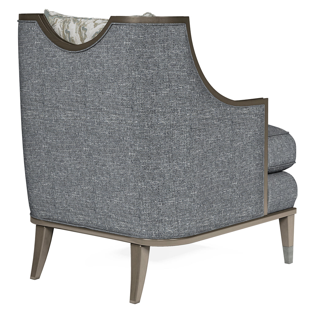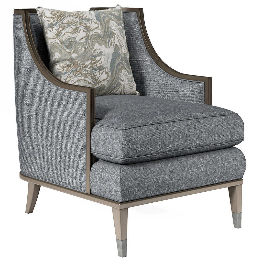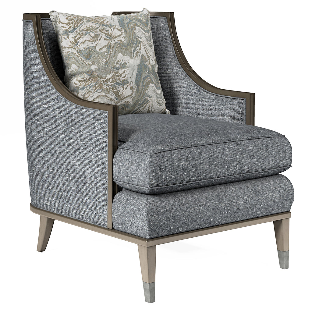 Clean and classic, the Harper Mica Chair echoes the lines of the Harper Mica Sofa and brings together elements of both contemporary and traditional design: square tapered wood legs, exposed wood frame, curved arms, and a reverse half moon cut out on the back. The chair?s comfort is 100 percent modern: tailored upholstery on the back and deck and a down-blend seat T-cushion, plus a 20? x 20? down blend throw.