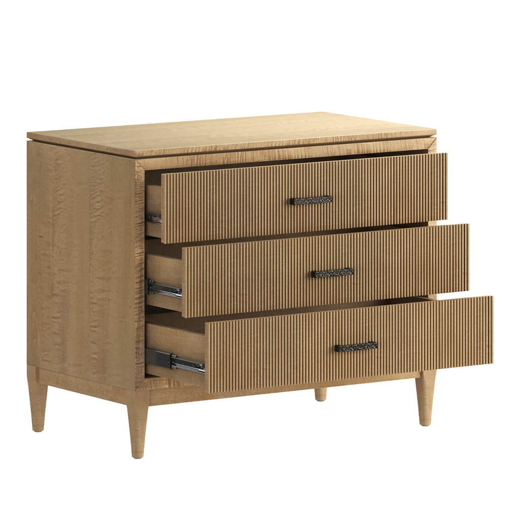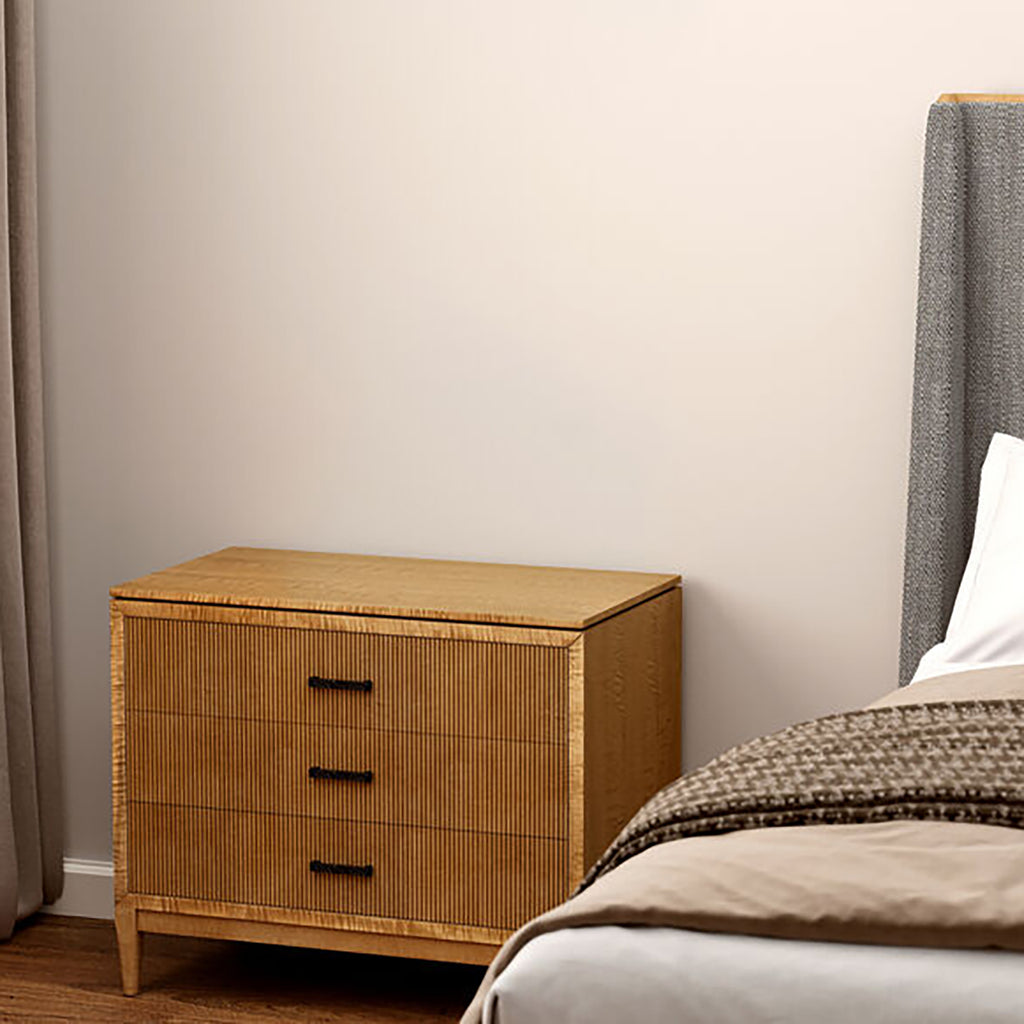 Classic contemporary 3 Drawer Bedside Chest with Grooved Drawers in Figured Maple