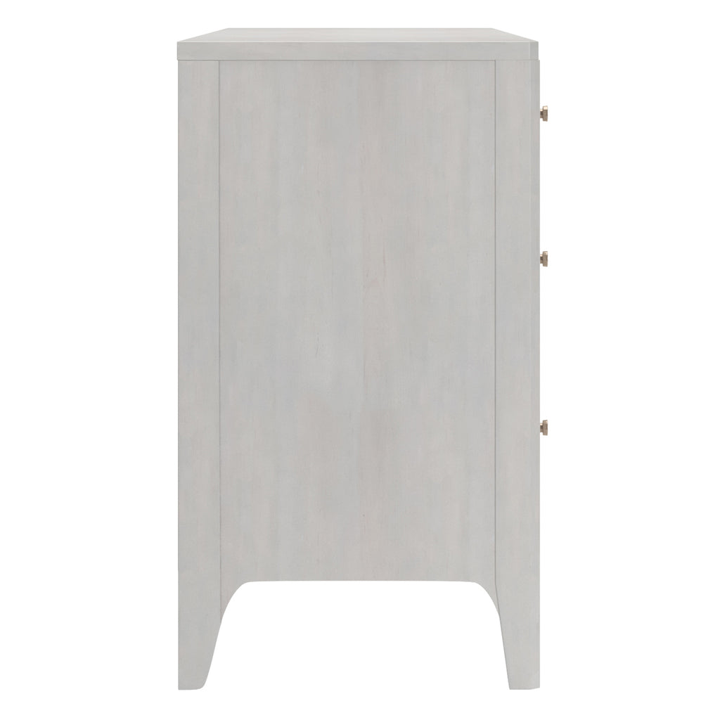 Classic beauty with a modern twist is the heart of this collection, exemplified here in this generously proportioned dresser. Crafted from maple veneer finished in dove gray, the six drawers are soft-close glides, with bottom drawers lined in aromatic cedar. Round drawer pulls finished in nickel adorn each drawer, giving the dresser a sense of timeless elegance.