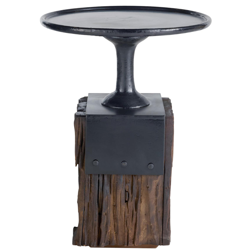 The Anvil collection was inspired by early memories of the anvil in the designer's family barn in Tennessee. The forged iron tops were inspired by 19th century cake stands.