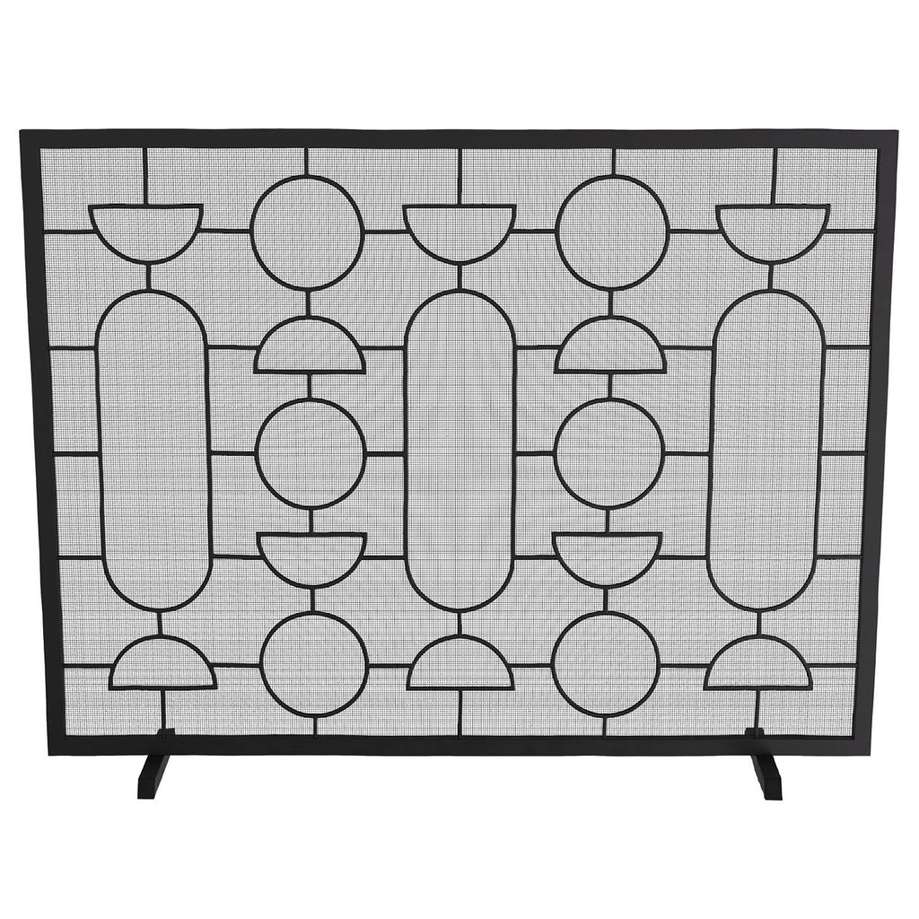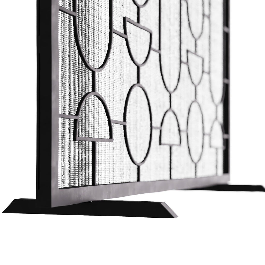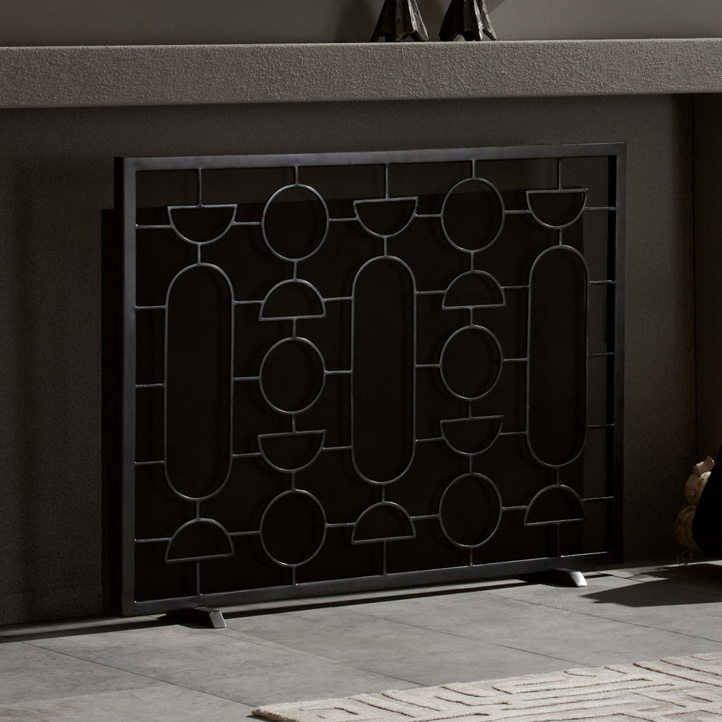 A sophisticated way to block stray embers, adamo was forged of natural iron with an inset screen of woven mesh. Fine geometric linework accents its structure, encompassing pleasing ovals, circles, and oblong shapes.