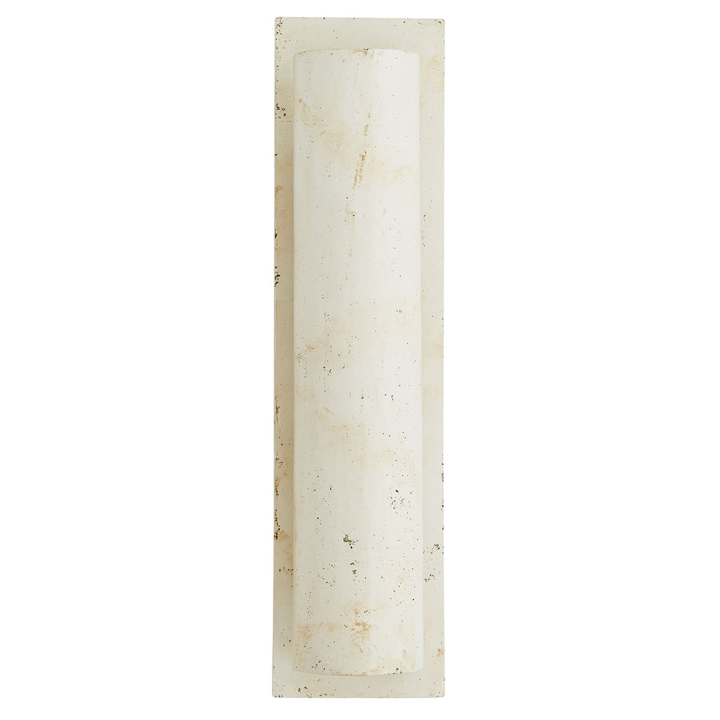 The Catalina sconce, crafted from cast stone composite in a light-stonewash terracotta finish, directs light up and down—made to integrate flawlessly with masonry walls. Finish will vary.