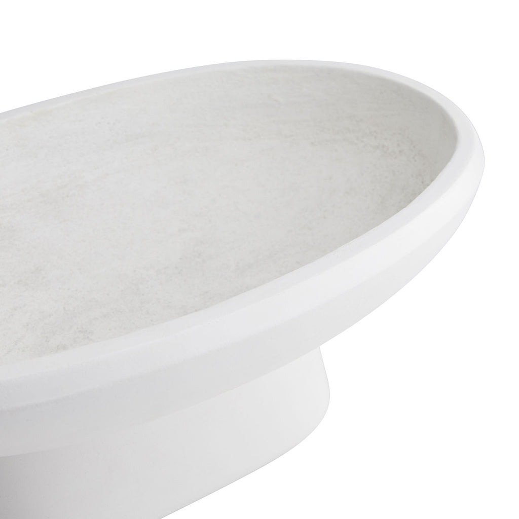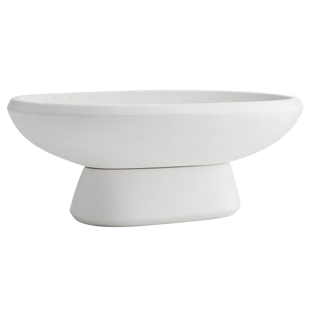 Concrete is molded and finished in a stark white to create a profound bowl-like top that rests on a tapered, boat-like base. This versatile design complements modern or traditional decor and doubles as an outdoor planter. Finish will vary.