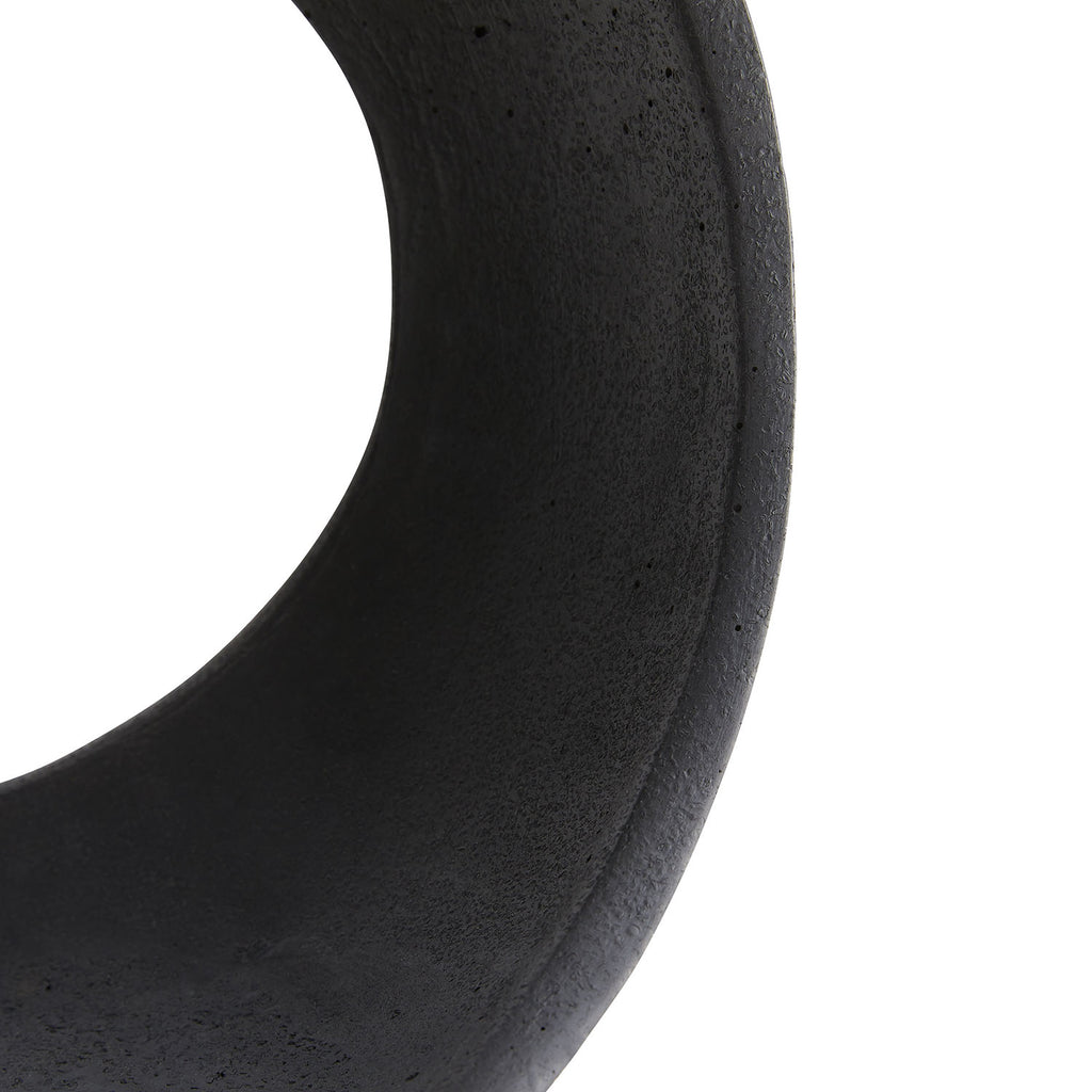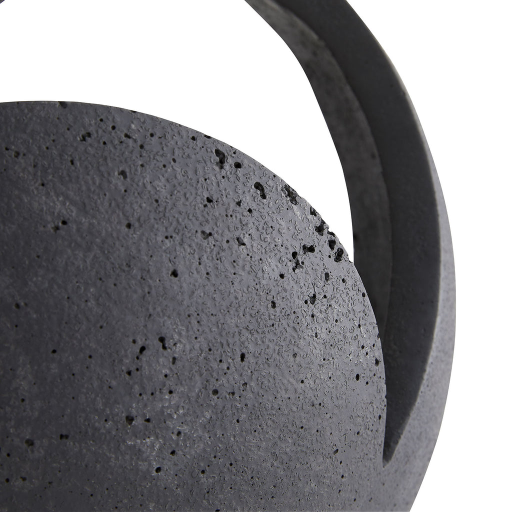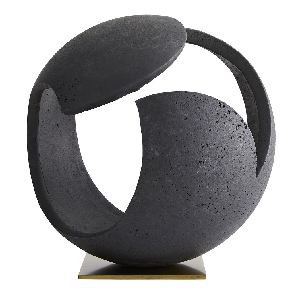 Sweeping curves evoke oceanic currents—constructed from charcoal ricestone with antique brass embellishments; finish will vary.