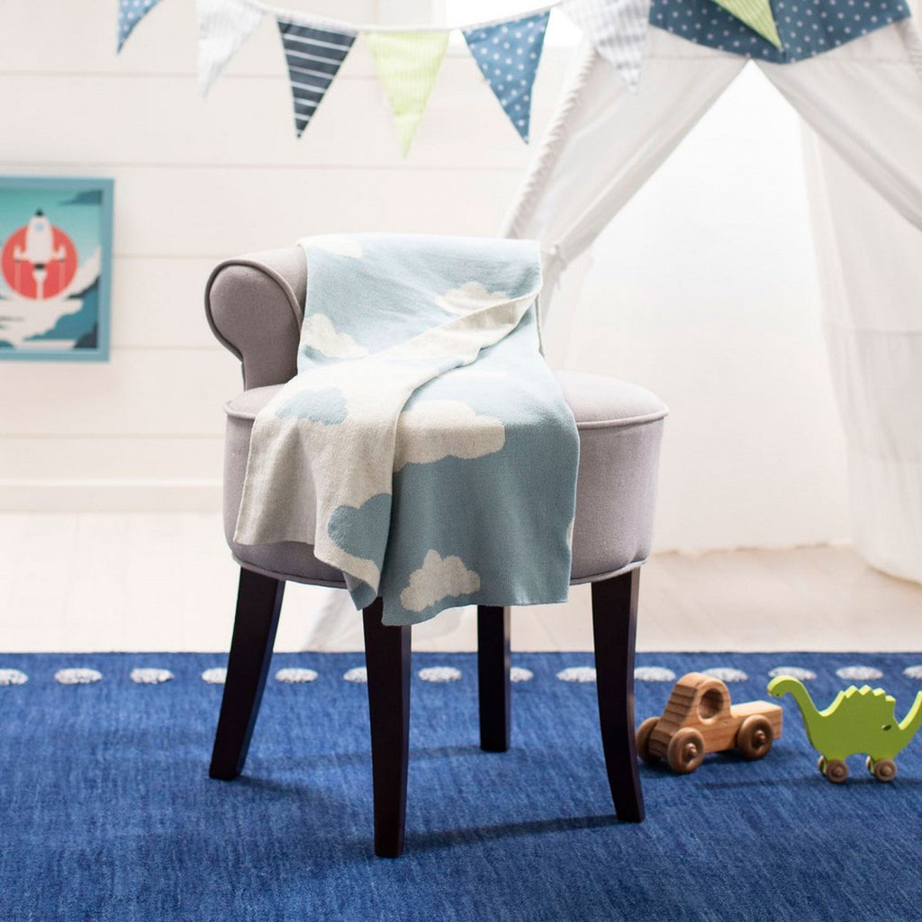 The wispy white clouds and arctic blue background of this baby blanket create a restful scene wherever your infant goes. Made of pure soft cotton, this baby blanket keeps your little one warm and comfortable in the crib, the playpen, or in the stroller or car seat when it’s time to go out on the town.