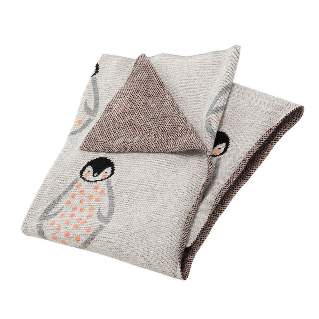 Your little one will rest easy in the cotton soft comfort of this baby blanket. The playful penguins are colored in a fashionable blend of black and coral against a smart grey background for a look that travels beautifully from the nursery to the playroom to the stroller.