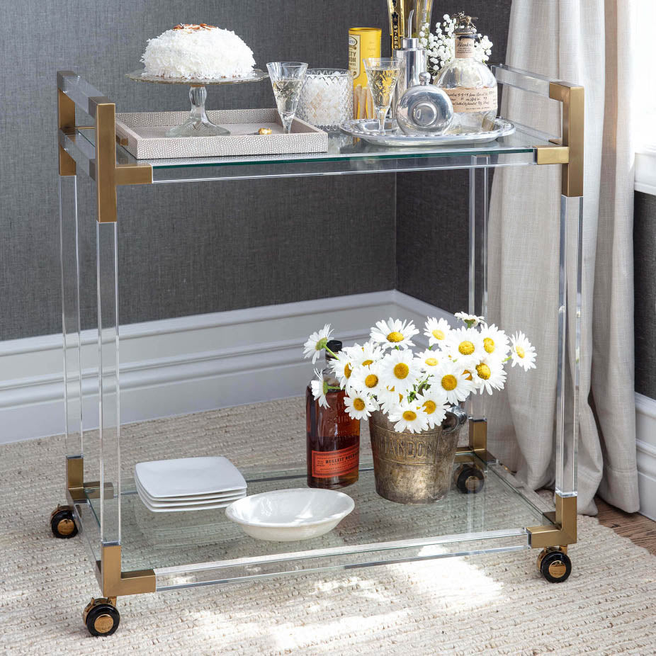 Acrylic and natural brass create a polished and contemporary vibe. Americano makes a great table side-serving station for an espresso, cappuccino, or latte.