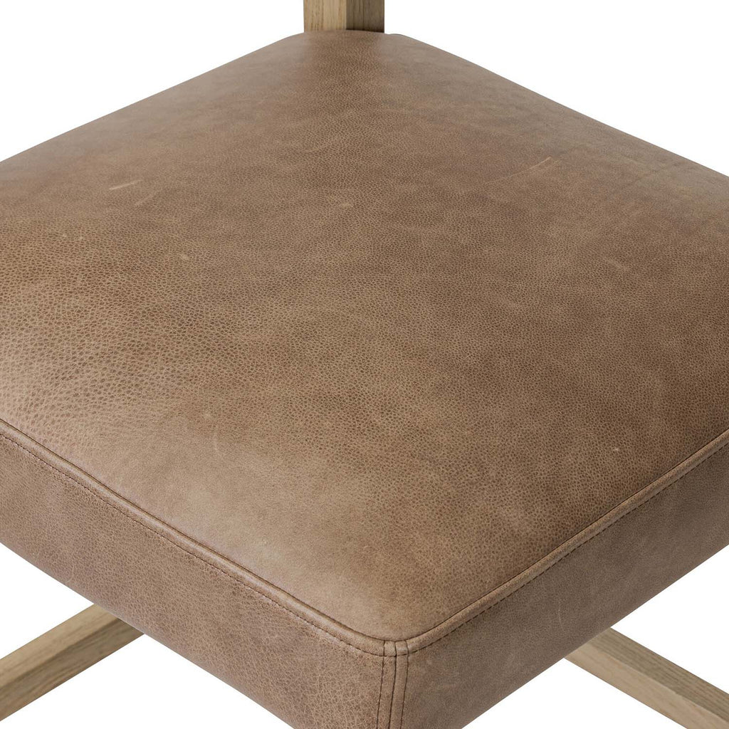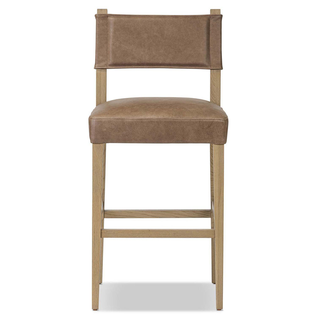 Perfectly sized for the bar, light oak frames lightly waxed, top-grain leather backing and seating.
