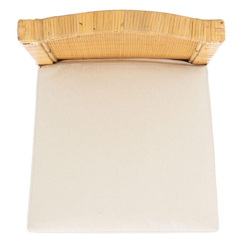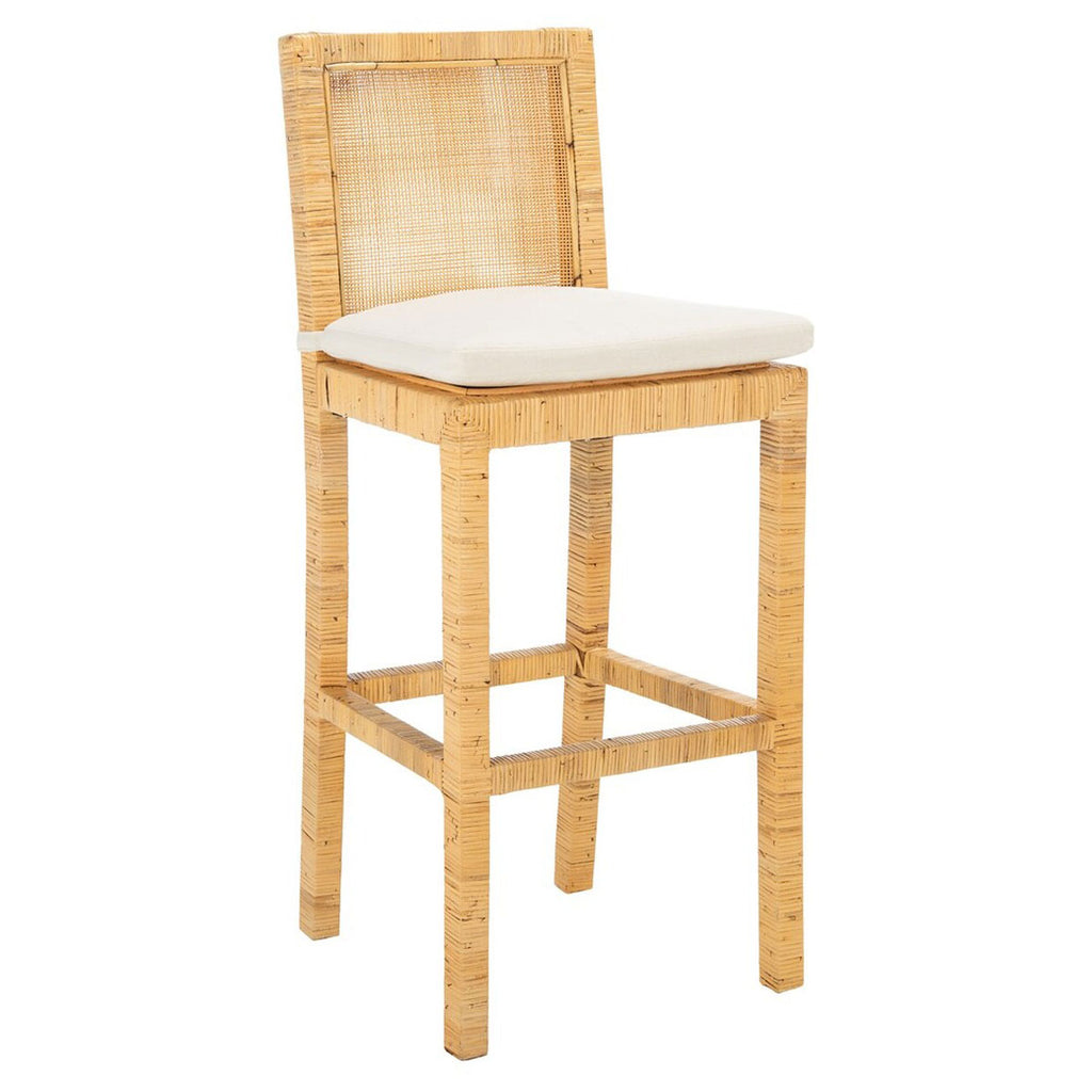 This bar stool brings breezy tropical flair to any décor, making it ideal for coastal contemporary interiors. The natural cane frame emanates soothing seaside vibes while its soft white cushion ensures comfortably peaceful drinking and dining.