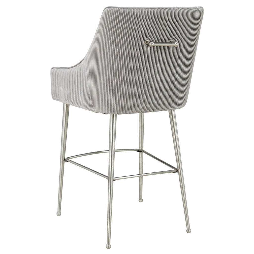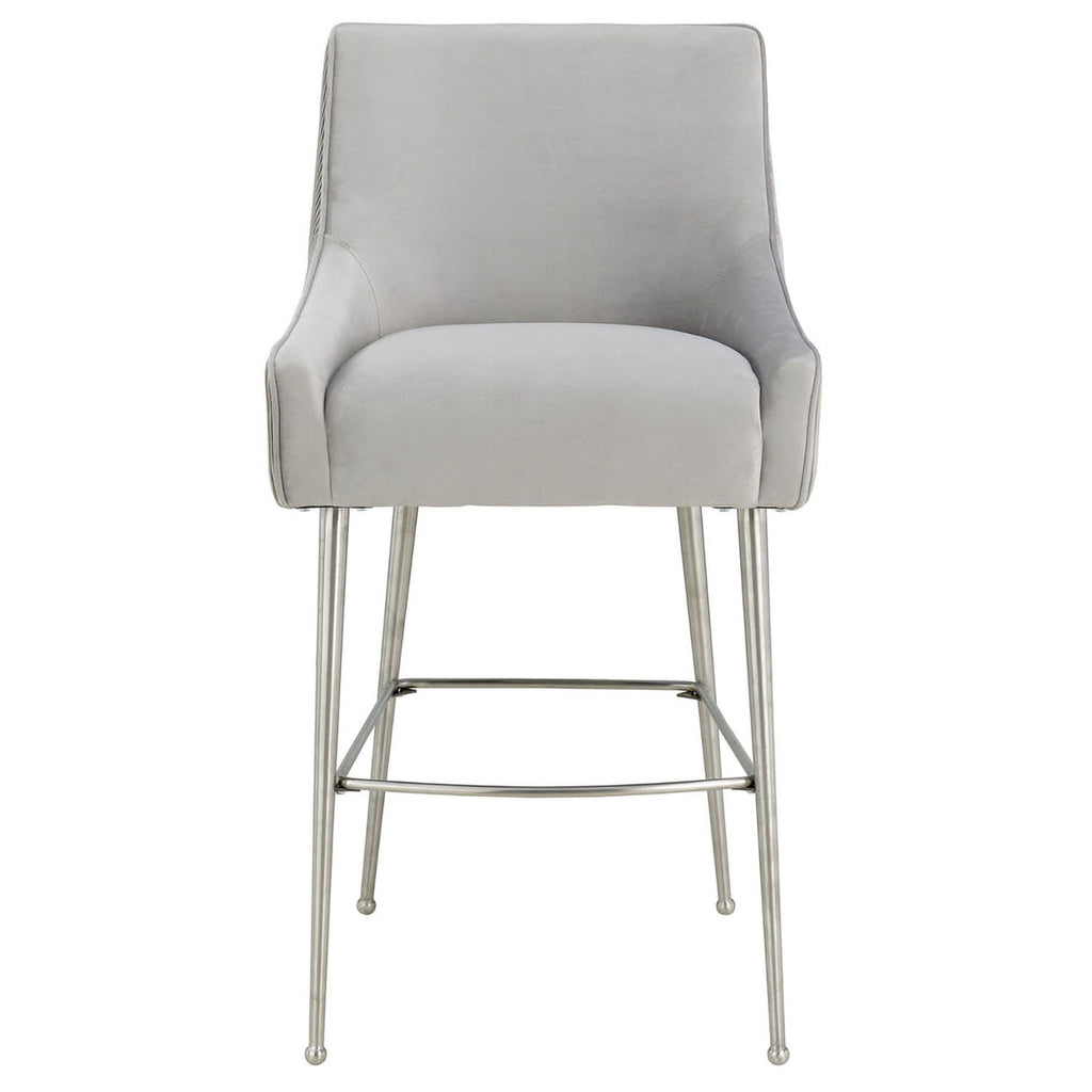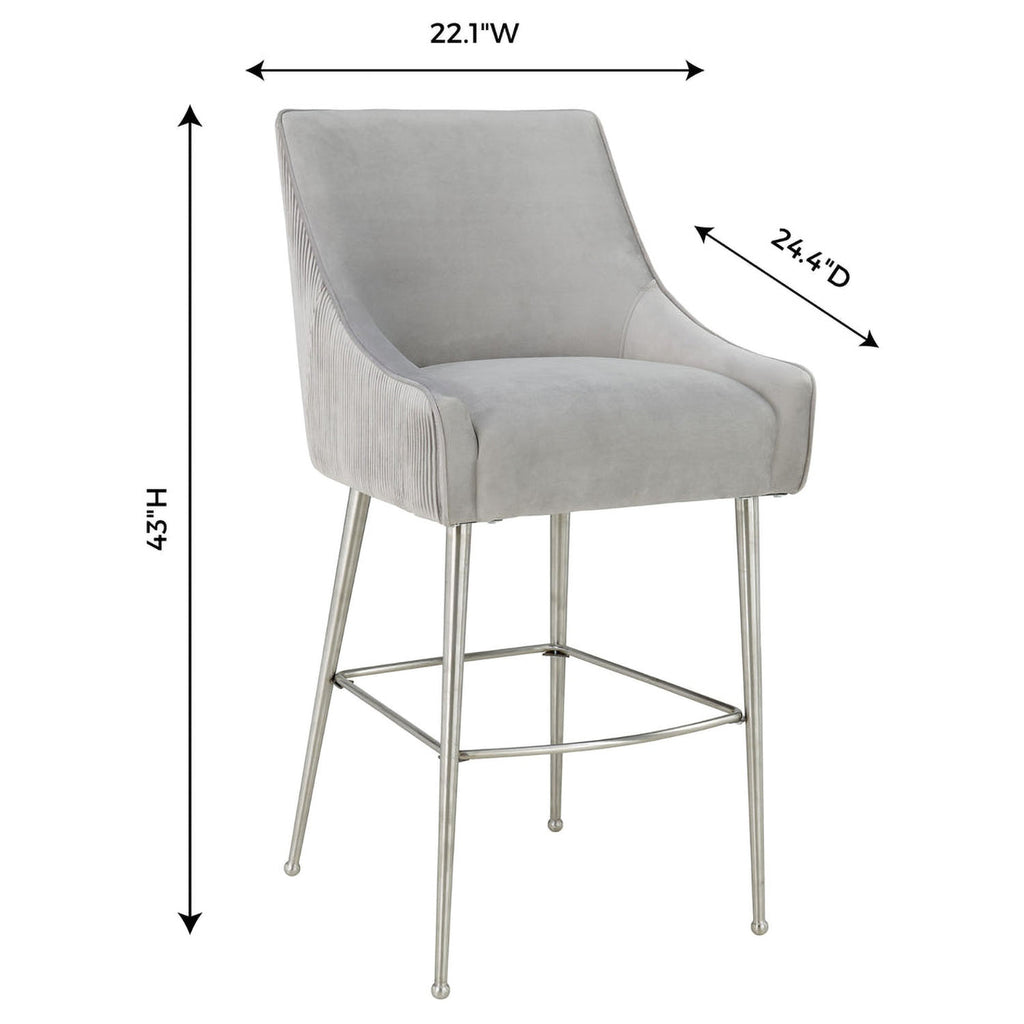 TOV Furniture Beatrix Pleated Light Grey Velvet Bar Stool