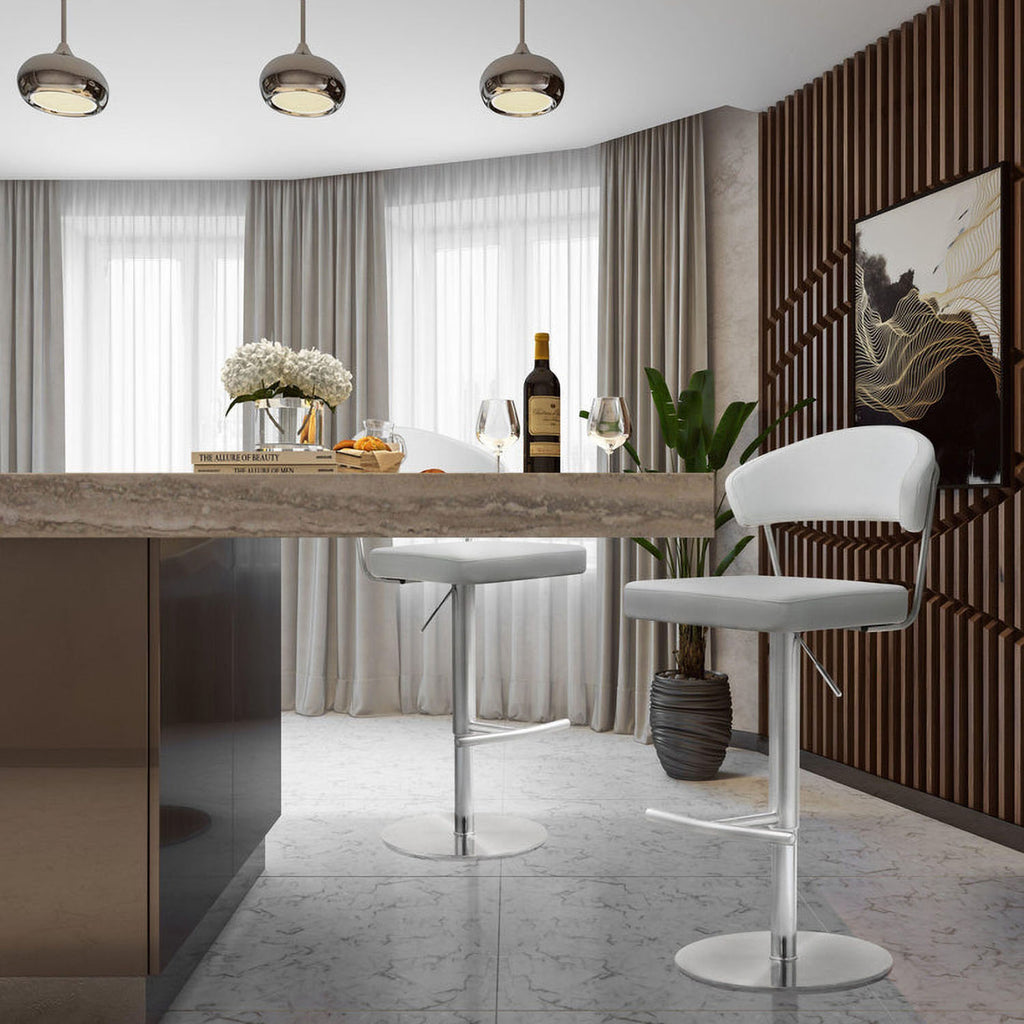 Furnish your kitchen or bar area in contemporary style with the Cosmo stool from TOV. The solid stainless steel frame provides a sturdy base, while the plush two-tone boucle upholstery and footrest ensure maximum comfort. The combination of angles and gentle curves gives this stool an eye-catching appearance, while the neutral color combination allows it to match well with any decor.