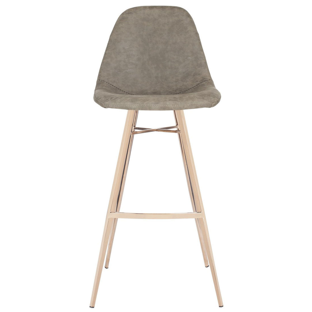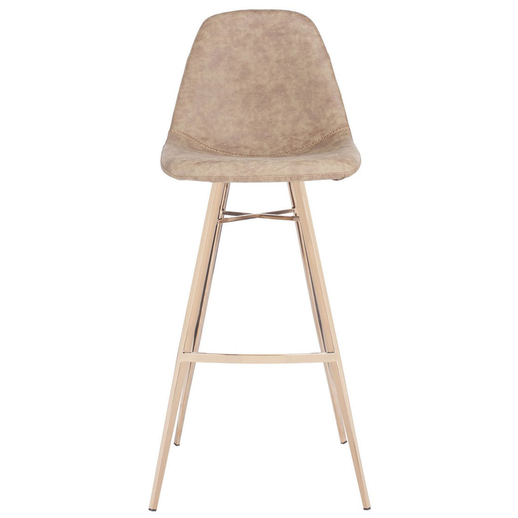 Bring the charm and character of retro style to any bar or entertaining area with this vintage-inspired bar stool. A modern design classic, its practical faux leather upholstery in neutral brown complements the deluxe copper finish on it slender legs.