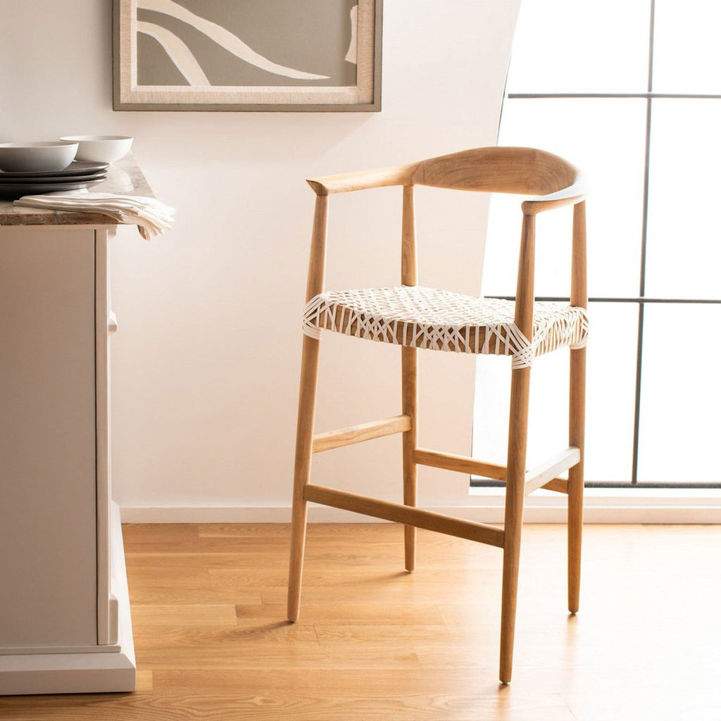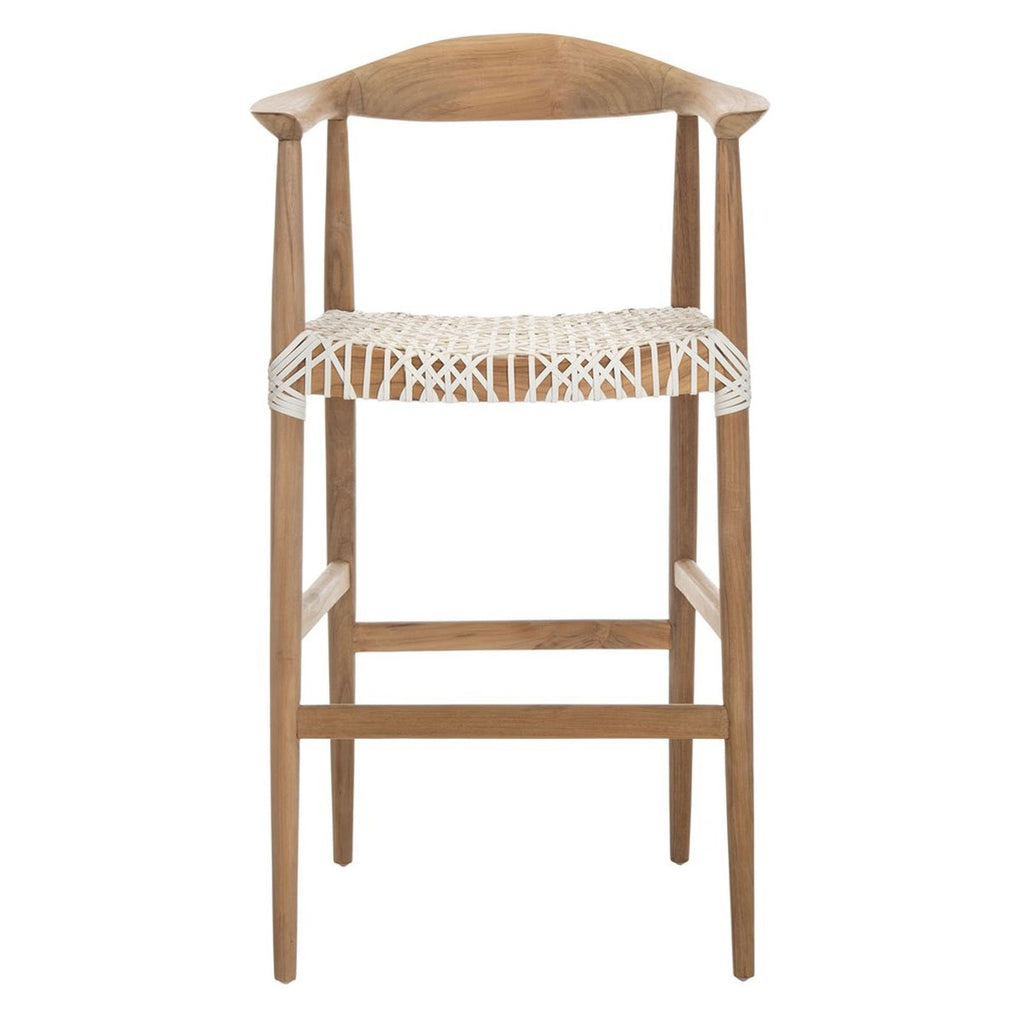 Take the design of any dining area to new heights with this contemporary Scandinavian-style bar stool. Crafted with refined, sculpted wood, its white woven seat is perched on elegant legs. Often used in pairs, designers love its minimalist sophistication.