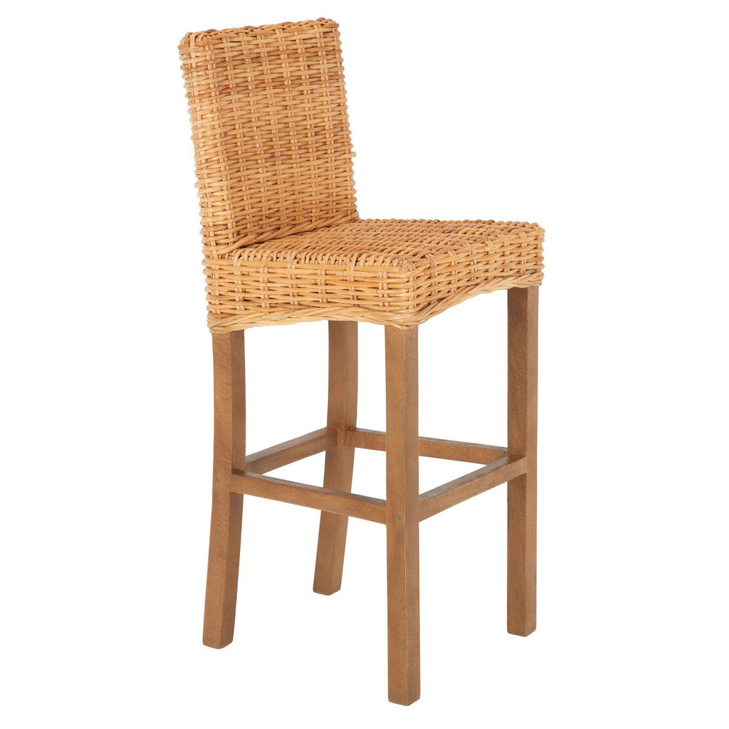 Designed to bring coastal cottage style to the table, this rattan bar stool embraces the art of relaxation. The natural toned Parsons legs and matching natural rattan seat are perfectly styled for rustic décor, suiting any color scheme with its soft neutral finishes. Sized for average bar height countertops.