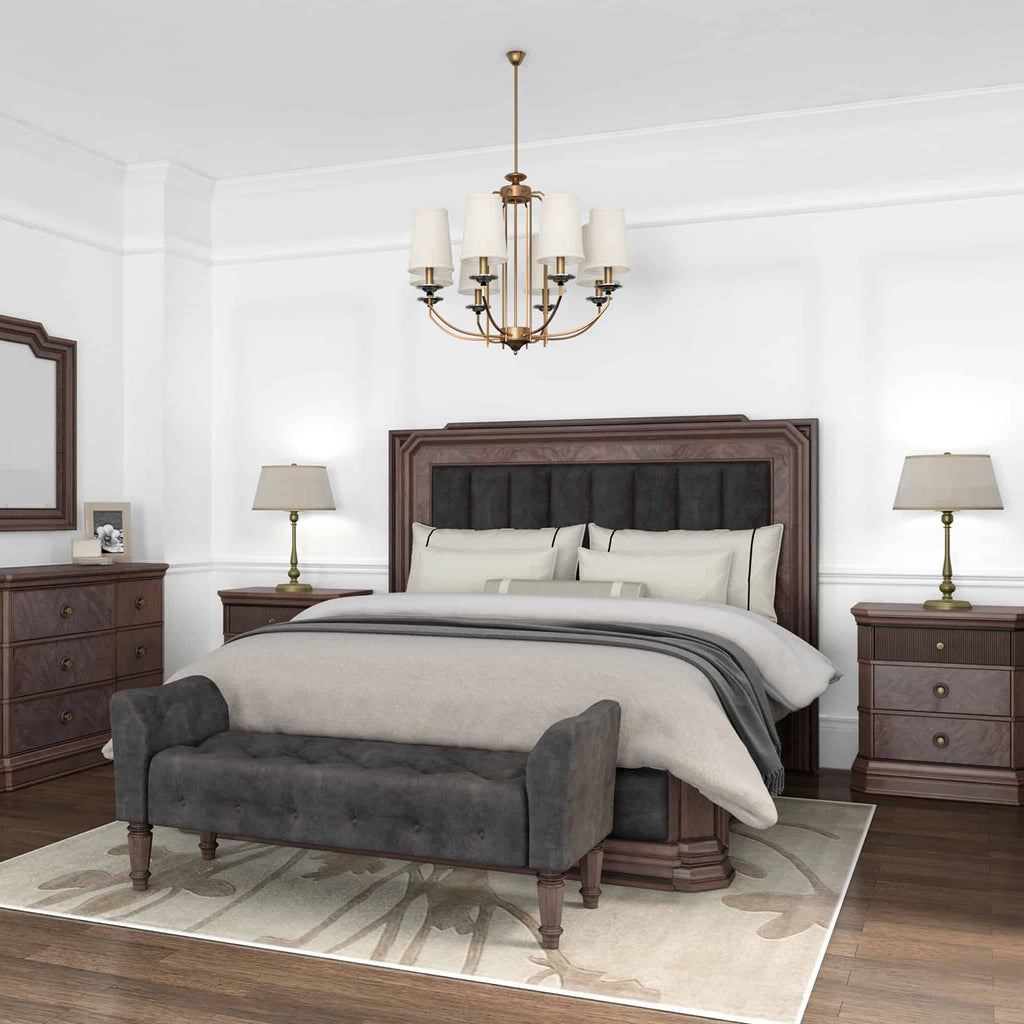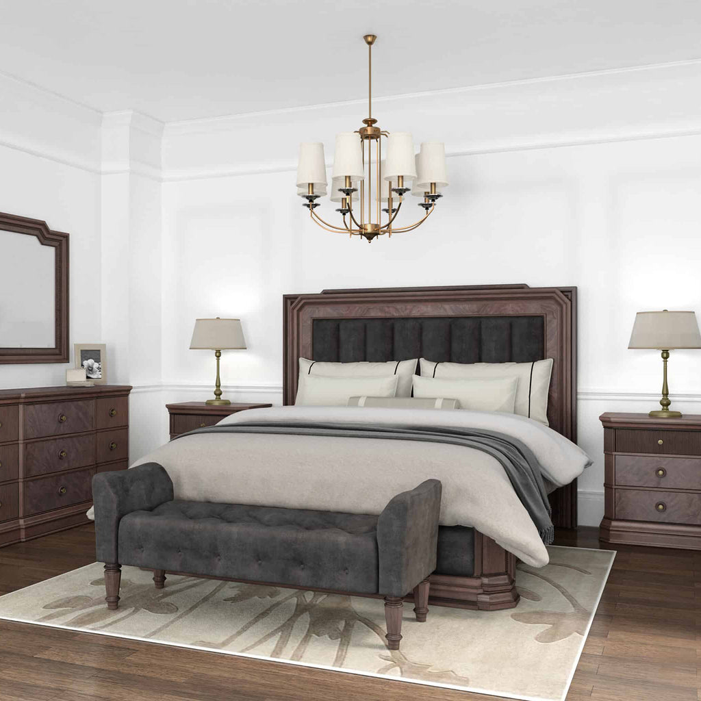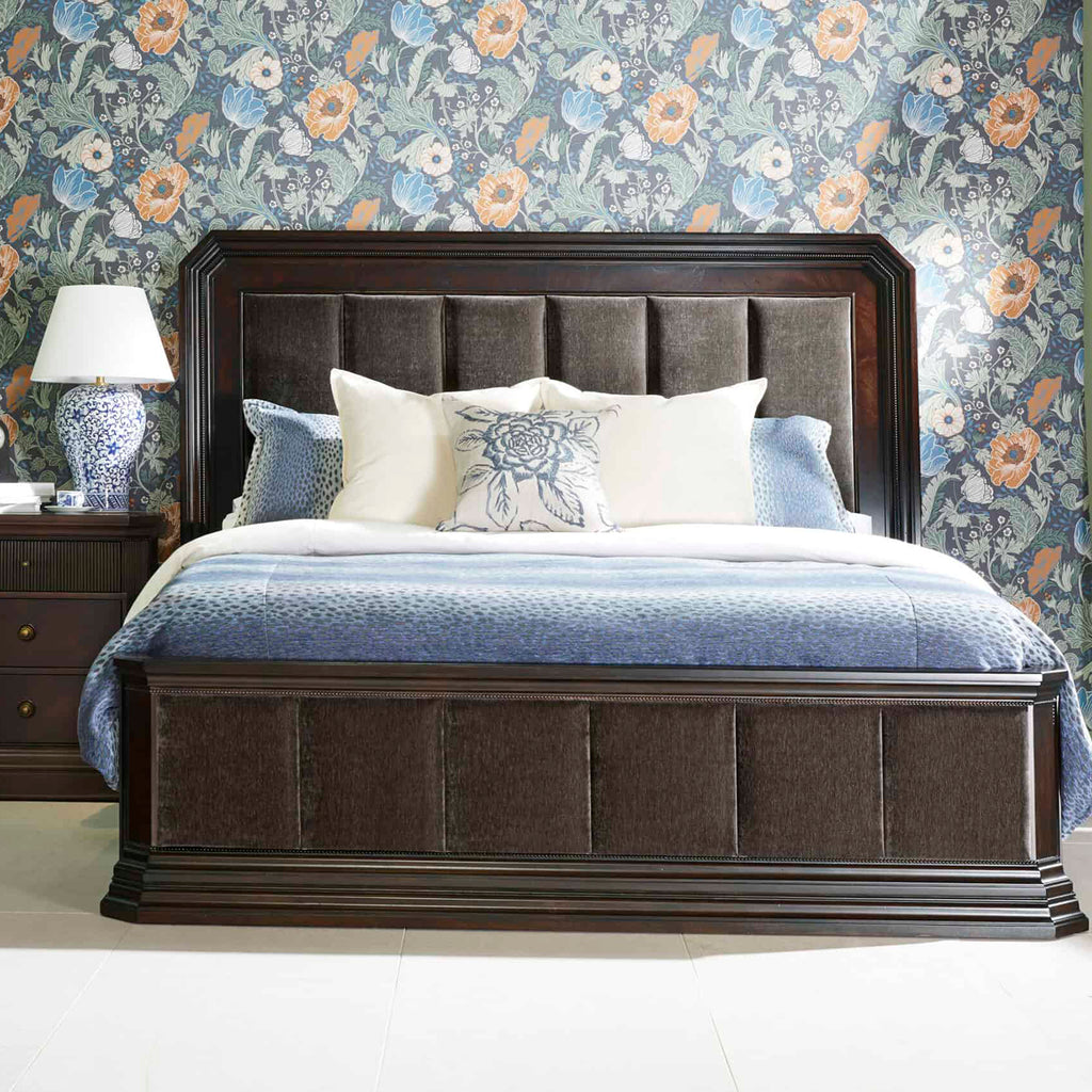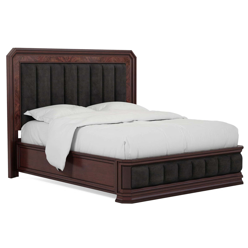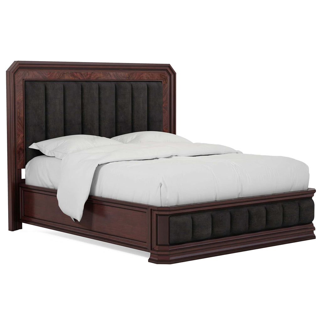 Indulge in the timeless elegance of our A.R.T. Furniture Revival Upholstered Bed and create a space where you can relax and rejuvenate in style. Meticulously crafted with attention to detail, this bed is a luxurious centerpiece for your bedroom sanctuary. The headboard and footboard of this bed feature sumptuous upholstered channeled panels, upholstered in decadent charcoal velvet fabric. Not only does this provide a plush and inviting feel, but it also adds a touch of opulence to your sleeping space, while the rich Napa Mahogany finish adds warmth and depth to any bedroom décor.