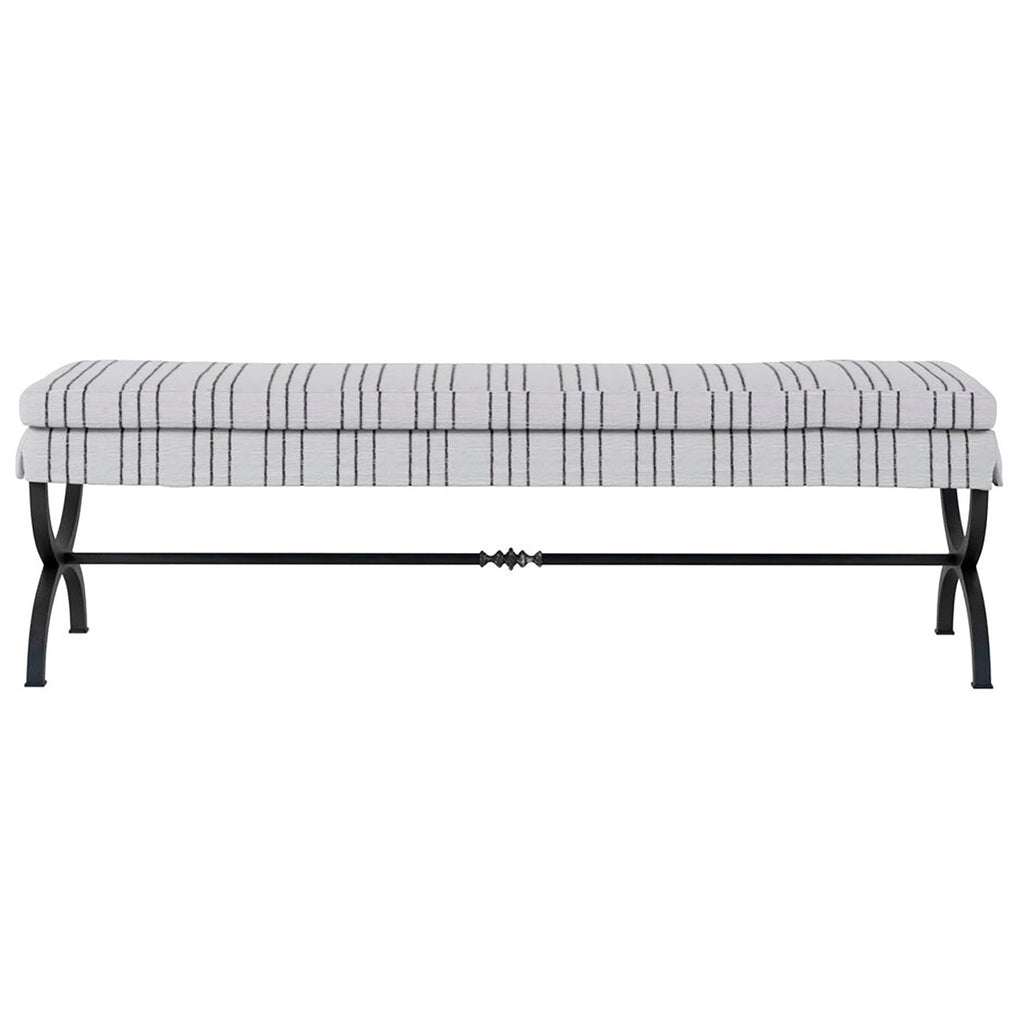 Whether placed in your entryway, bedroom, or living room, our A.R.T. Furniture Alcove Bench becomes a versatile seating solution that adds style and functionality to your space. Experience the comfort of the attached seat cushion, the elegance of the waterfall skirt, and the timeless beauty of the design. Embrace the refined craftsmanship and iron base of this bench by using it to create a welcoming and stylish ambiance in your home.