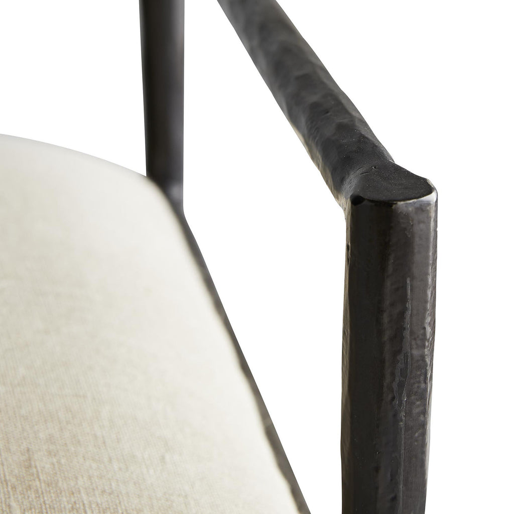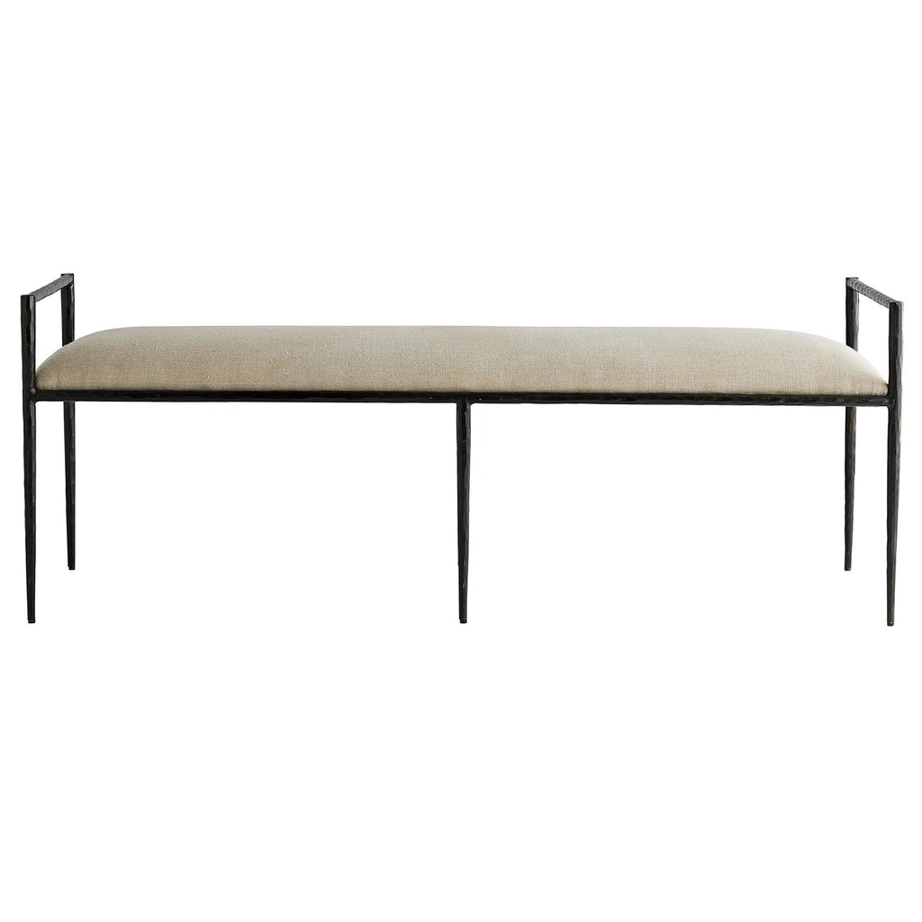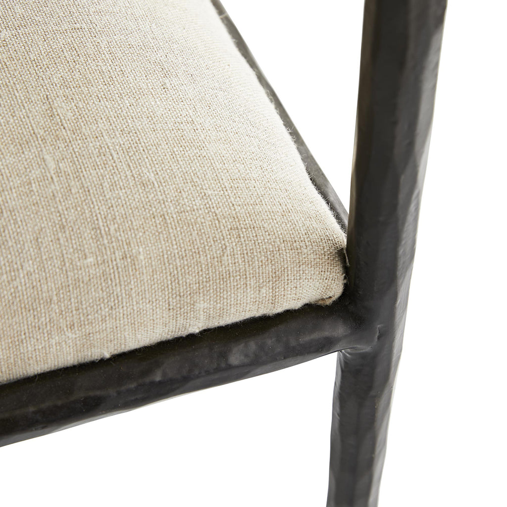 The Barbana Bench raises the bar for stylish seating options. Its exquisite hand-forged natural iron frame perches on delicate legs as faint as insects', while the tight seat is upholstered in natural oatmeal linen—finish will vary.