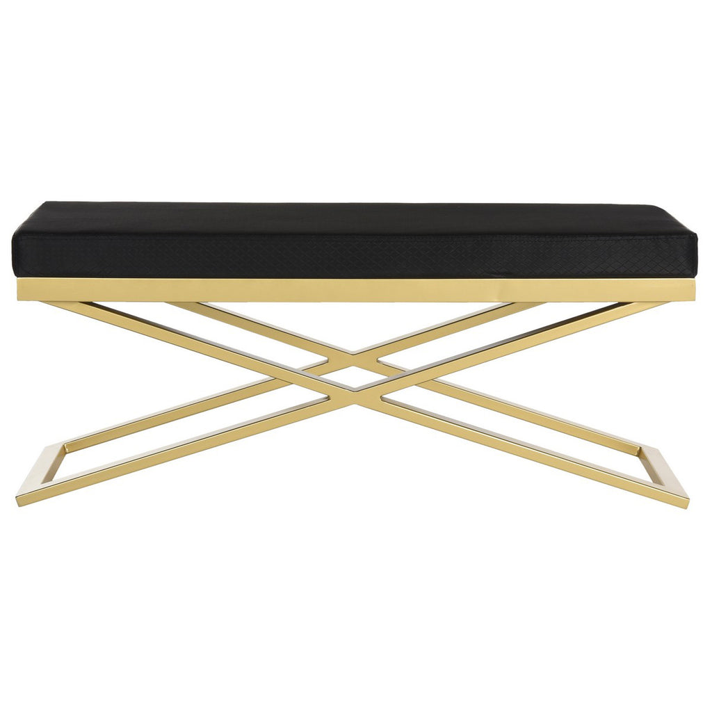 Inspired by the glamour of Park Avenue’s most stunning interiors, this bench brings soft modern style to any interior. Its stunning white crocodile or black bottega PU leather upholstery pairs beautifully with the refined gold finish.
