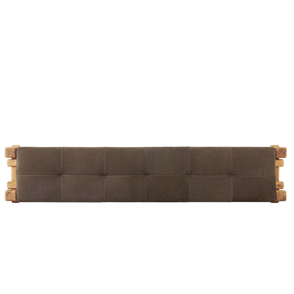 Designed by Thomas Bina and Ronald Sasson, a design partnership blending both modern minimalist and Brazilian influences. Crafted from natural reclaimed French oak with overstated joint details, with a top-grain leather cushion for comfort. Rounded edges bring a soft, playful feel to the entire piece.