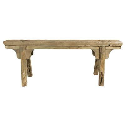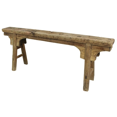Crafted in the mid-1800's of elm wood, a wood that is strong and long lasting and made without using nails or screws these pieces were created for pure function; small stools to sit on while working, narrow benches to perch on while eating and are now given the chance at a more glamourous job. Stools to hold towels next to a bathtub and benches the perfect proportion to fit at the foot of a bed. Sizes are approximate and will vary. Each item is unique in style and design and the wood will show signs of age and use from its history.