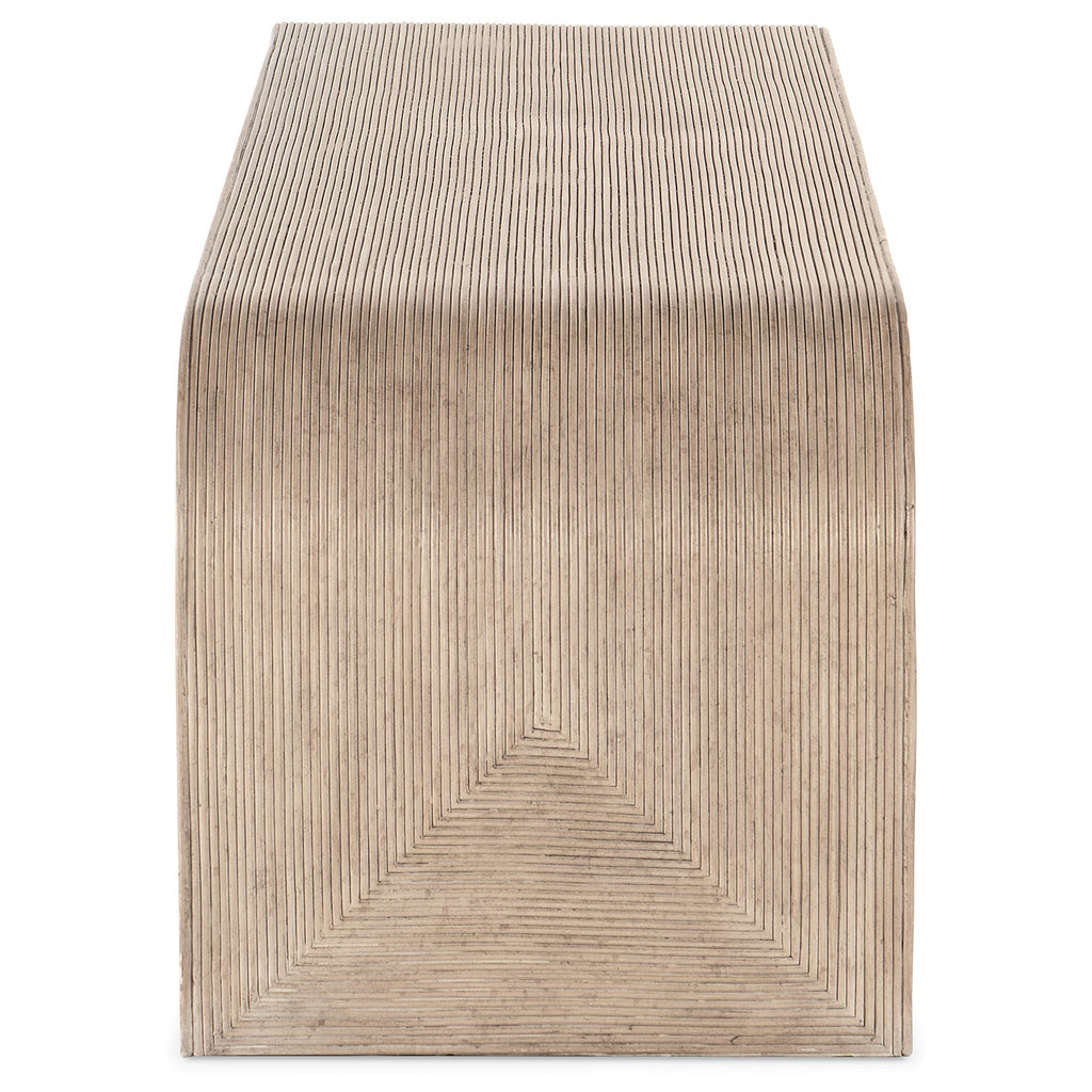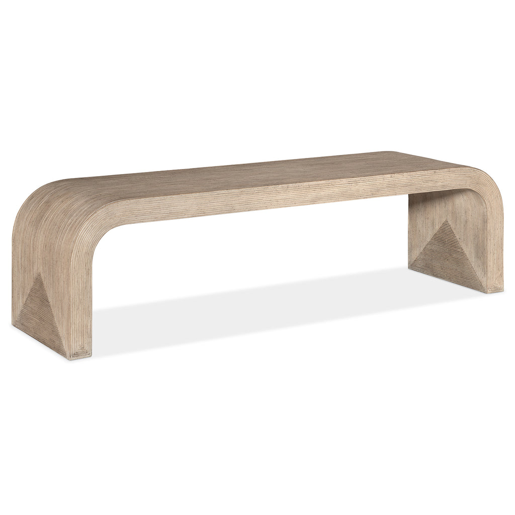 In a tranquil arched rectangle form, the Commerce & Market Bench brings serene style to any space. In a ridged design in a light natural wood finish, the bench has a triangle motif on the bottom of each side.